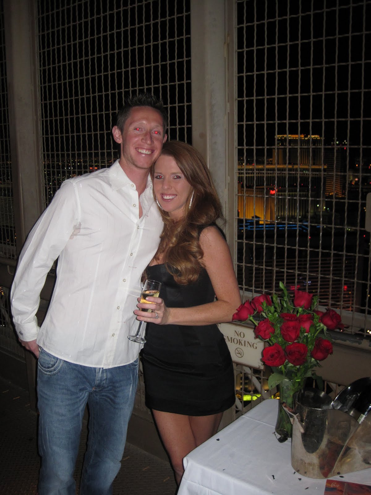 Tuesday we were slowing down some but headed back to Mon Ami Gabi for a delicious brunch, then headed down the other side of the strip to check out some more scenes! We ate lunch at the burger bar and it was SOOOOO good! Then we headed over to one of our favorite spots in Vegas, Rum Jungle, for some happy our Jungle Juice! We were pretty stuffed so we decided to go back to the room and get read for our last night big night on the town BUT Drew had something up his sleeve! When I was done getting ready I thought we were heading over to Blush, but instead Drew had tickets to go up to the top of the eiffel tower. We were shooed over to the VIP side and then when we got to the top a table with a dozen roses, a bottle of Dom Perignon and a super sweet card was waiting on us! I was sooo surprised! They dont allow anyone to have glass or drinks but they made an exception for Drew! SO SO SO sweet! I am one lucky lady! The Bellagio Fountains were SOOO gorgeous from this view too! I still can’t believed he pulled it off with me finding out! He is a keeper : ) We did head over to Blush for a little dancing but we were getting pretty tired at this point haha!