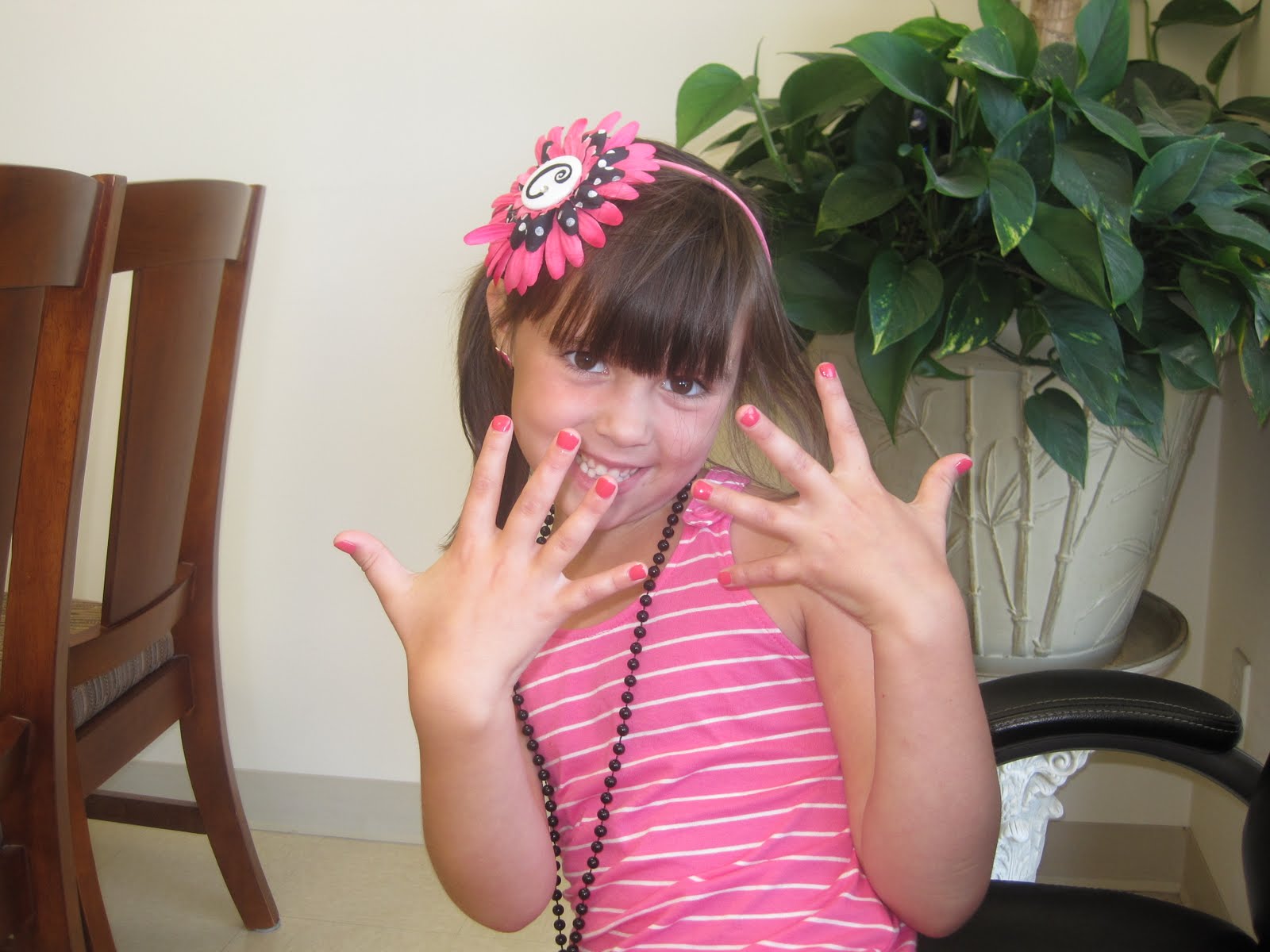 Today my sisters, claire, mom Jess and I went and got pedicures! We made a stop at Starbucks first where Claire was cracking us all up with her dancing. I love that child! : ) We all got some bright fun colors for the beach. It always cracks me up to see Claire in a pedicure chair, she is an old pro! LOVE it!