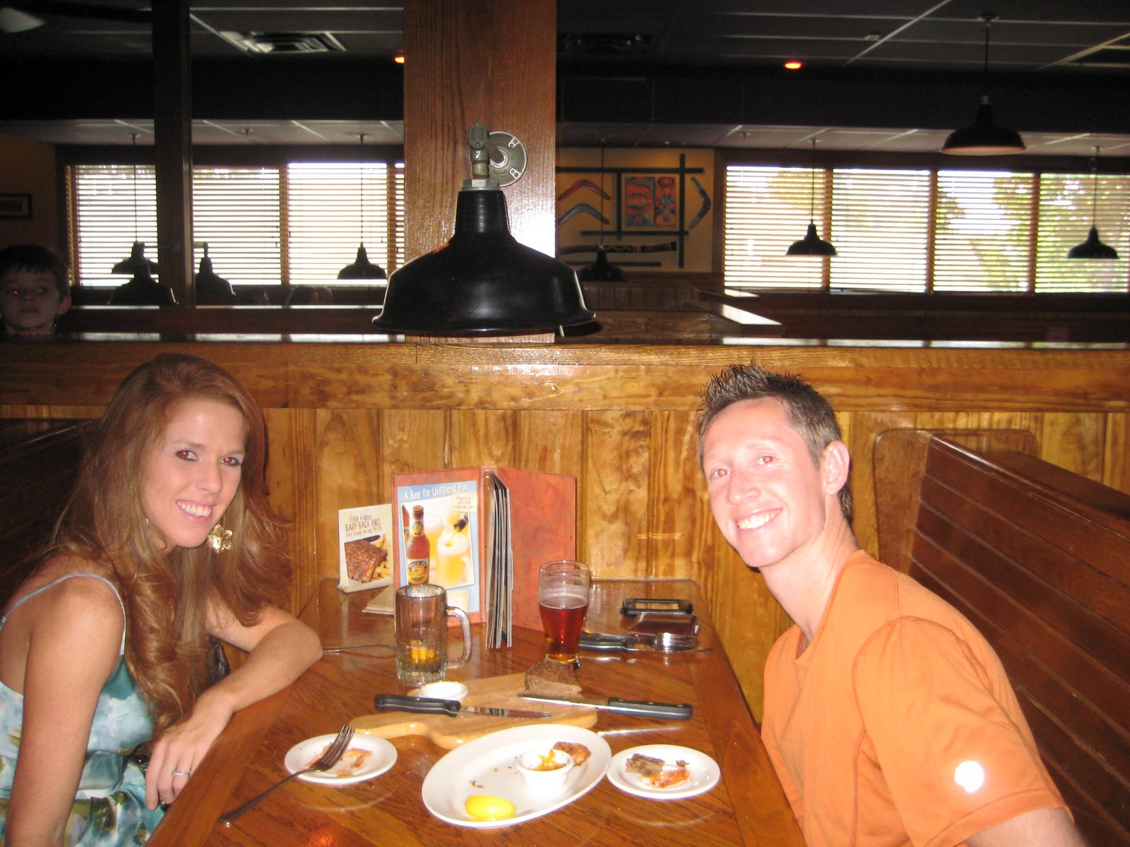 I came home from work and Drew had some gorgeous flowers, red velvet cupcakes, and a super sweet card waiting on me. Then that night he took me on a progressive dinner of all my favorite foods! How cool is that?!? First stop was outback for my FAVORITE, coconut shrimp. I mean I am obsessed with those guys haha. So we had that and a few beers and headed to our next stop, Pesto. We shared some yummy chicken marsala and wine. It was soo good. Then the last stop we went to Theos for my favorite, creme brulee and a martini. It was so much fun hopping around and enjoying great foods! I am very blessed to have Drew and I think we have started a new tradition : ) I took a few pics along our little dinner tour.