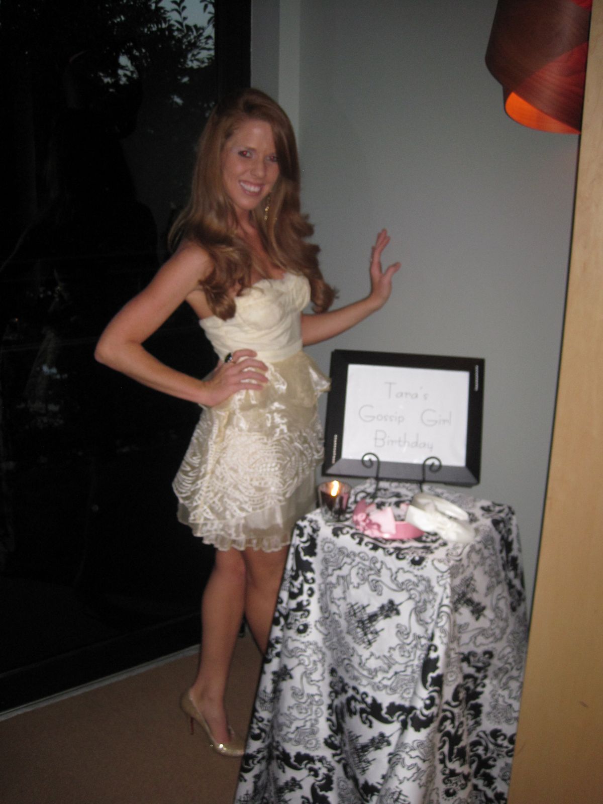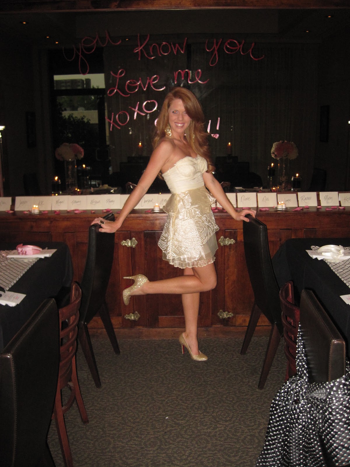 So awhile back I decided to go with a gossip girl themed party. One, I love Blair and Serena. Two, I love all the clothes. And Three, I knew I could make it super girly and fun! So first things first. For those of you that have watched gossip girl you know that gossip girl sends out “blasts” about people when they are caught doing something they shouldn’t be. SO I made a gossip girl blog and I sent out blasts daily about the people who were coming to my bday. It was HILarious! Of course everything was made up and fake, but everyone got a kick out of it. You can check it out here. Then to the decor. I immediately ordered headbands for party favors in creme, pink and black, I found these adorable high heels to use as name card holders, I made the arrangements myself, I added the bows to the candle holders and the crystals to the chandelier, I added the beads to the candles and I painted and jazzed up the XOXO letters for the tables. Bordinos made the menus for me and they even had a signature drink called “the Upper East Side” for me. Perfection! They were SO adorable and perfect. I also had thank you cards for everyone and in true gg form they each had a blast on them about someone at the party and we all read the out load after we had a Dom champagne toast(blair’s favorite) : )…. they were pretty ridiculous but funny : ) I designed a shoe cupcake with the local bakery that looked like a louboutin : ) perfect right?! Outside there was a balcony and I had two gossip girl stations, one had a quiz to find out what character you are on the show and the other was a gossip girl scent and headband station where I had mini bottles of chanel perfume and fun headbands. And you guys know me, I am a shopper and when it comes to my bday I got crazy. I ordered a dress about 3 months ago for the party that was like a dress serena wore on gossip girl. THEN I found this DARLING dress that was SO blair and had to have it AND then I got my new shoes and it matched perfectly. SO I decided why not wear both. I mean I know thats a tad silly, well REALLY silly, but hey I dont care haha.