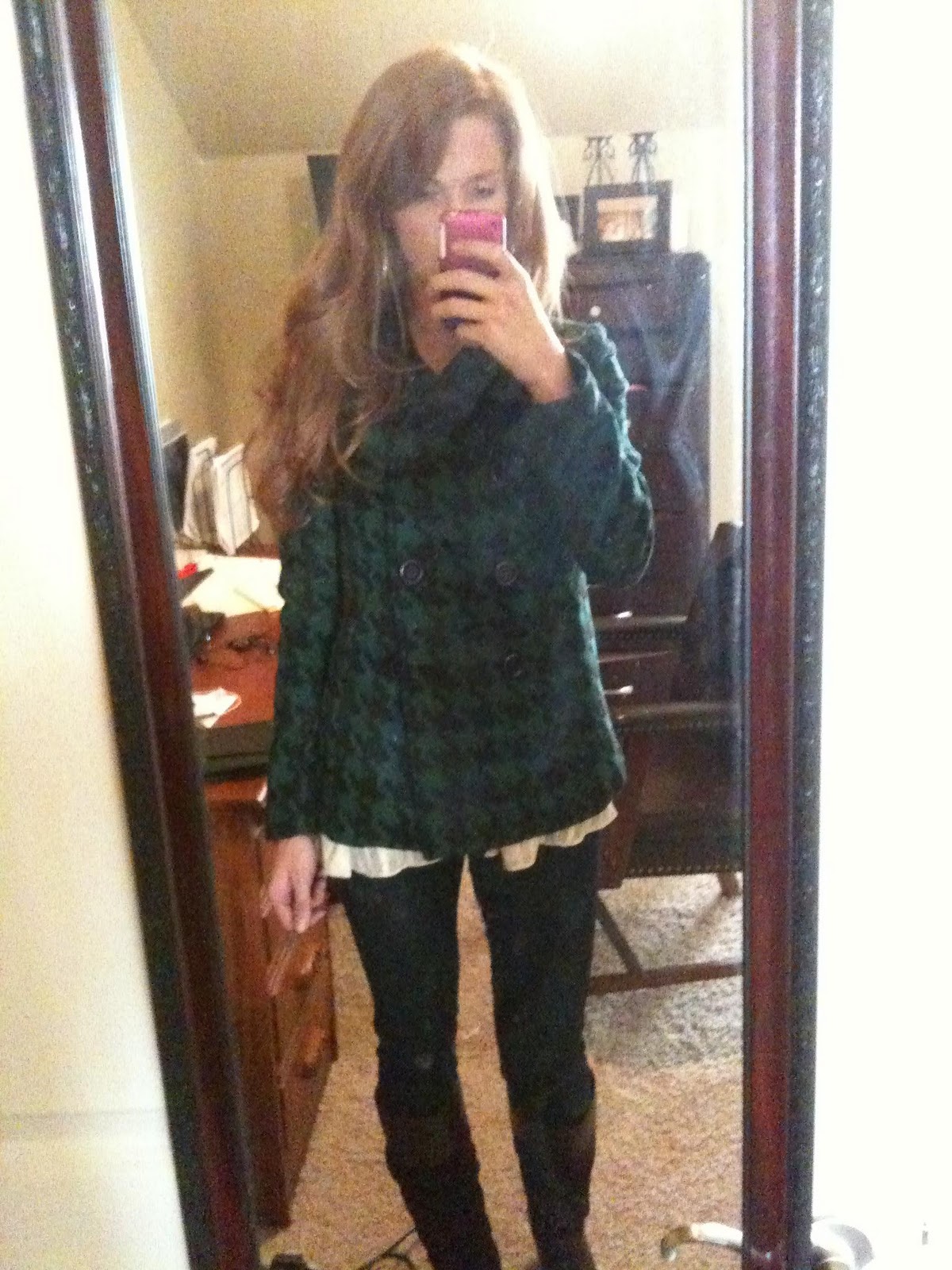 Well I got a few BARGINS this week. One being this adorable houndstooth green and black for $10.00. yes TEN DOLLARS! crazy I know. Look how cute it is
