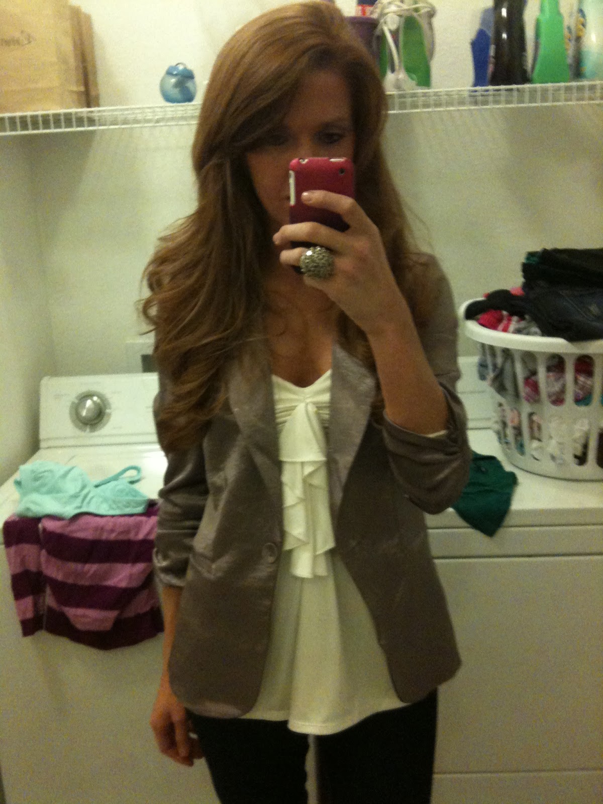 this metallic blazer is from charlotte Russe. Its not online yet. Its suuuuper cute and it comes in pink too! The top I got a couple years ago BCBG Generation.