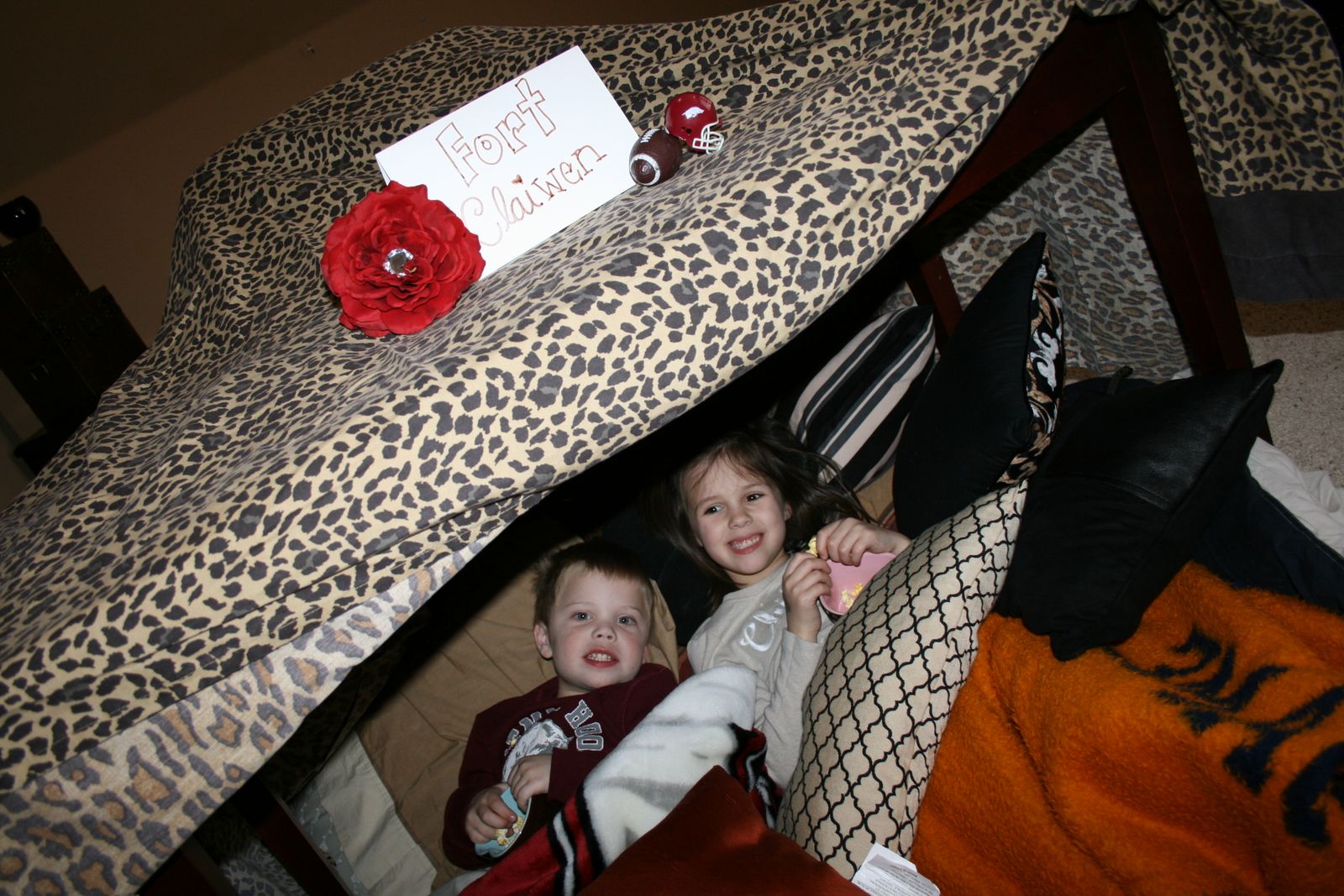 Its safe to say we have some Cabin fever around here. I am working from my mom’s house so I can go to the office it needed, but the roads are just awful. We even have a slight chance of more bad weather to come this way.. .i am OOOOOVER the snow! The kiddos are so board and the adults are about to lose their minds haha. So we decided to make the kids a fort to watch movies in. Only we would have a leopard fort : ) I named it Claiwen (Claire + Owen) haha. It kept them occupied for a little while.