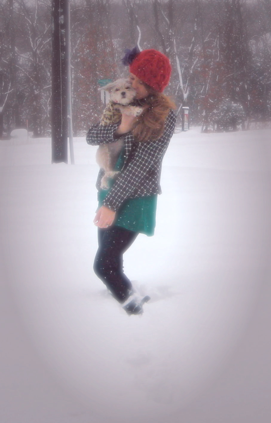 SOOOOOO remember when I was hoping that the snow would miss us… haha.. well not only did it NOT miss us.. it hammered us. We got around 18 inches in fayetteville with 3-4 ft snow drifts! In the weee early morning hours we were getting 3-4 inches an HOUR! SO SO crazy. I think its absolutely gorgeous though. Sadie woke up at her usual time to go potty and when I opened the door, she wagged her tail, and then growled and ran back inside. too funny. BUT we eventually went out and had a blast. She really likes it, she just doesnt like to get wet ; )
