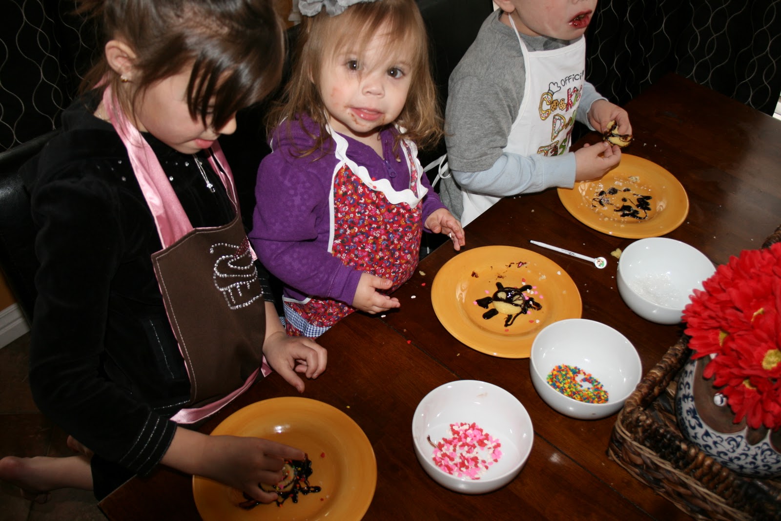 When we got home Bree was ready to play again, imagine that haha. I made a pallet in the floor and turned on a movie, thinking maybe, a very slight maybe, someone may fall back asleep haha.. NOT. So I figured lets just start baking some mini doughnuts. They were a huge hit and the kids had a blast decorating them. Owen was eating them as fast as I put them on his plate. haha