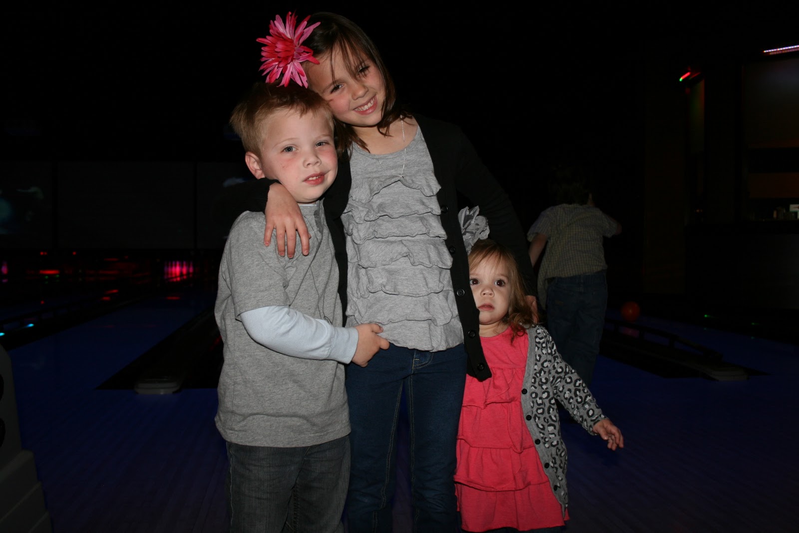 We called it a pretty early night because I had to get up bright and early to take care of Claire Bear, O-bo and Bree Belle, overnight. Rachel and Shane and my mom and step dad Jake were all going to Hot springs so I agreed to take care of the three rascals. This was the first time taking care of Bree overnight, so I knew i was in for a ride haha. First up I had to get all the kiddos bathed, dressed (matching of course) and then we were off to Fast Lanes for some Bowling. We had tons of fun bowling, eating pizza and just goofing off. It was hilarious watching them bowl. Then we were off to Wal-Mart and this is where I almost had an OMG moment. We were rushing around trying to get all the goodies to bake and for dinner and then Owen fell asleep while riding in the basket. I felt so bad, so I was rushing around and THEN Bree fell asleep. Oh no, oh no I was thinking, So i picked her up out of the front of the cart and started to carry her. Mind you, I had on 4 inch heels, and a leather jacket, double mistake. Luckily Claire could push the cart for me, she may or may not have knocked over a bucket… It came out of nowhere! I promise : ) Bree was a dead weight bc she was passed out, so I was sweating like crazy, arms turning into jelly and ready to get OUT of there. I am sure I got a few looks, but hey I think I did a pretty good job haha.