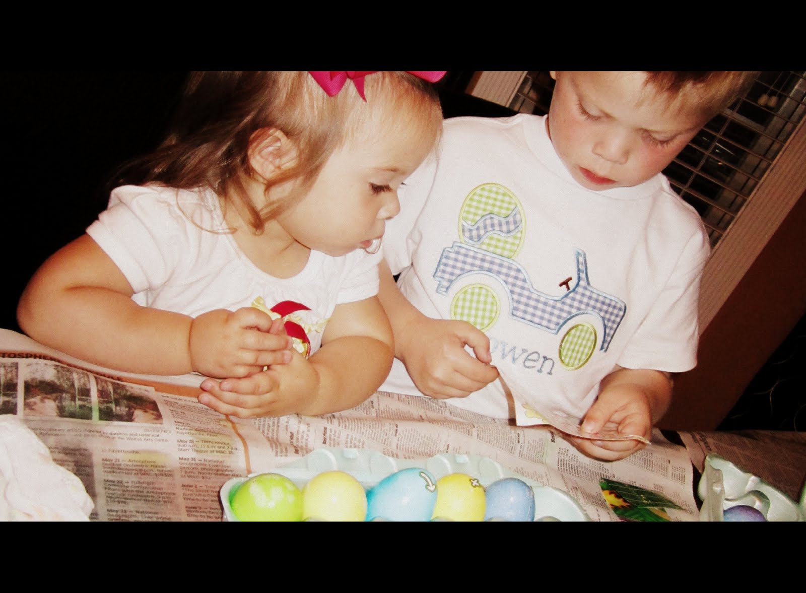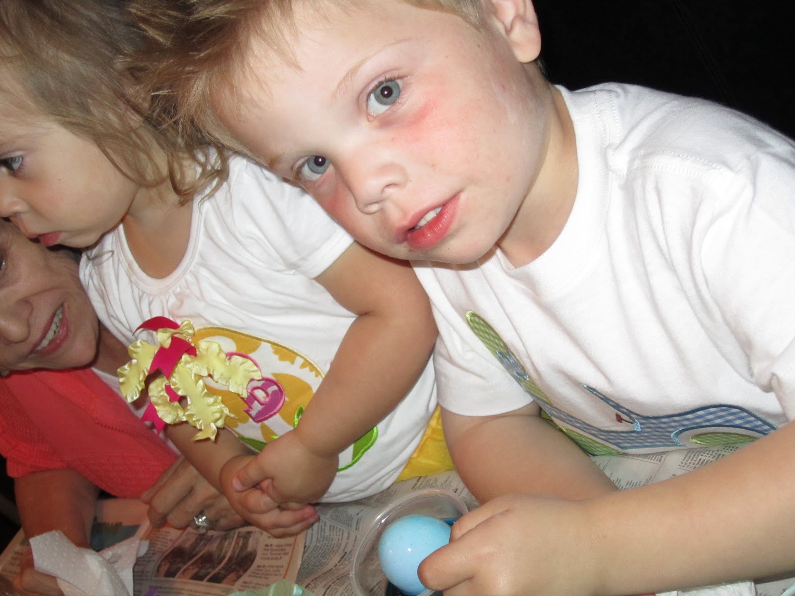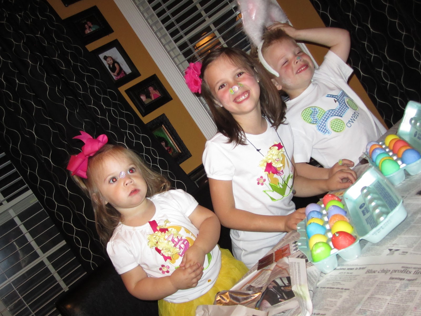 Friday evening started off pretty eventful. We have had some BAD BAD weather in NWA. We were headed to my sisters to color eggs and the storm was literally following us. It was 15 min after we got there and we were in the bathroom taking cover. There was an INTENSE storm coming straight for us. Luckily the storm didnt produce any tornadoes, but after we were in the clear we watched some of the clouds and it was freaky. Rotation, funnels forming, etc. I am pretty scared about this tornado season : (
