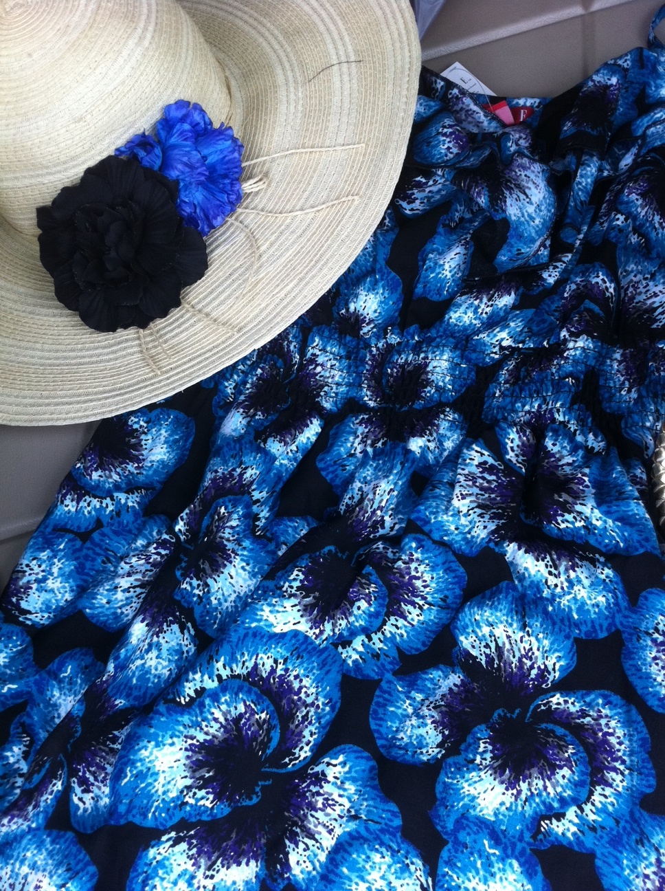 the Jimmy Choos and Tennis Sheos giveaway winner’s dress and hat that I added flowers too! She is going on a mexi vacay with her hubs! Thought it was pefect!