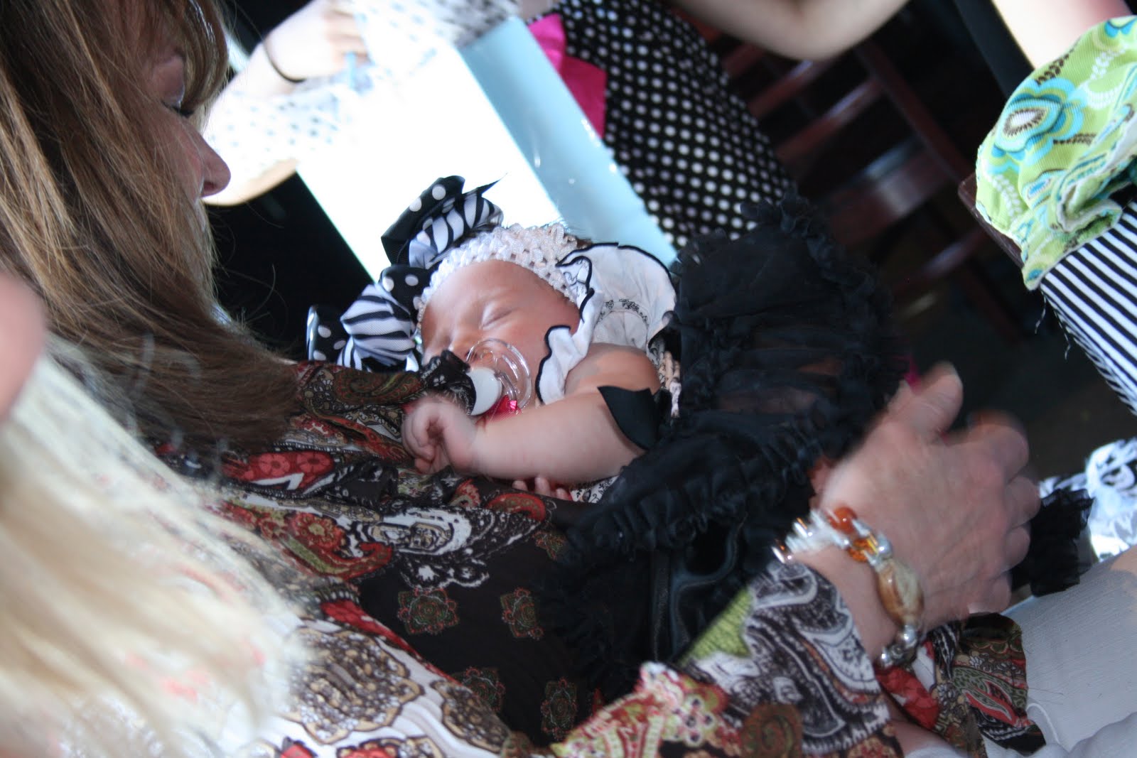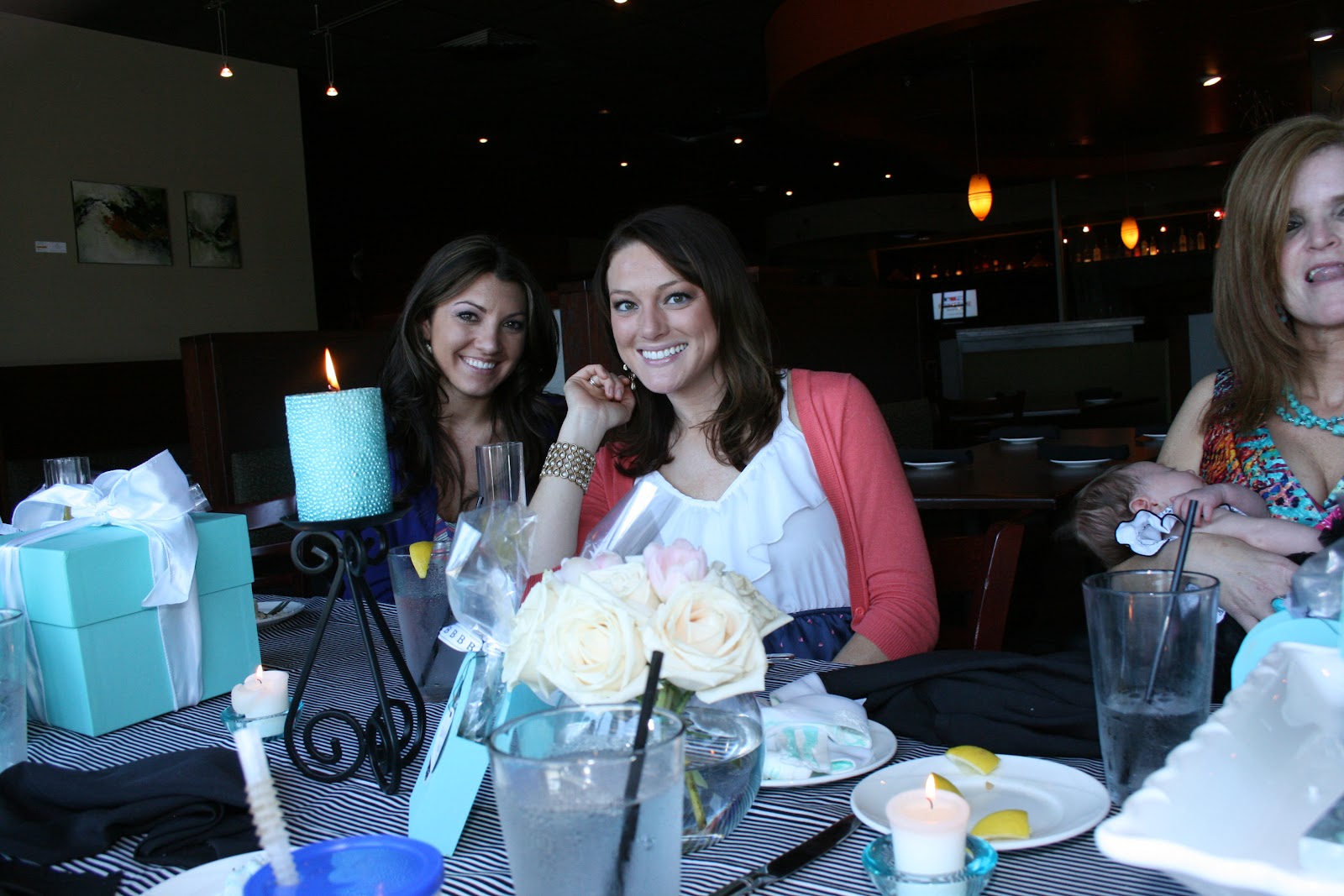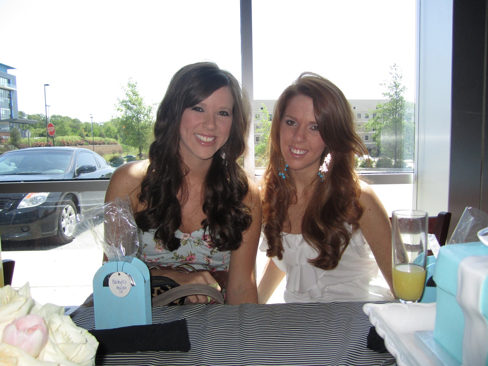 We had another busy busy weekend here in NWA. Friday night I spent getting everything ready for Miss Bailey’s baby shower. This was kinda a last minute deal and I threw together a party in a week! I immediately knew what I wanted the theme to be.. Tiffanys! BUT instead of Tiffany & Co… it was going to be Bailey & Co. I have been obsessed with Tiffany blue forever. I love it! I am planning to incorporate it in my guest bedroom very soon. I went to Hobby Lobby and just started walking around to get ideas. I found these adorable wooden purses and snatched them up. I painted them Tiffany blue and put fancy stickers on them that said “Bailey & Co.” Inside the purses I bagged up cookies that said “Bailey & Co” then I edited a pic of Brooke (the mama) to make it look like Audrey Hepburn. it turned our SO cute. I put a “B” tag on the Cookie bag and wrote “Houston TX” bc thats where they live and that of course is where Bailey would need to be “returned” too : ) Then I picked up some chic candle sticks, gorgeous sparkly candles, and a few other odds and ends. I already had the Tiffany boxes too. The cake was the easiest choice.. Ricks of course. They also made the cookies. The cake turned our PERFECT! Somehow it popped in my head to make jeweled pacis to put on the cake. Bailey is much to young for an engagement ring, so a fancy paci it was! They were a huge hit. I wanted this party to be simple and chic, which was a first for me haha. Usually i have lots going on, but I just love how it turned out. The party was so much fun and the day was just beautufil! Lets get to the pics shall we….