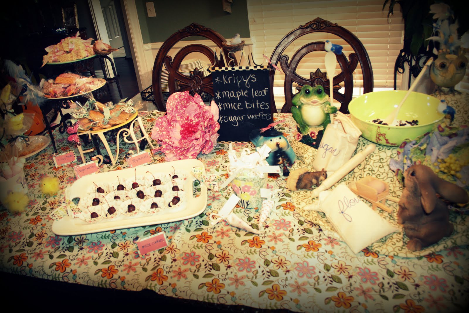 Saturday was the day i planned TWO PARTIES. Yes I am crazy in the head. My morning reminded me of Katherine Heigl at the begging of 27 dresses. haha The day started off early with a last min trip, omg i forgot to get this and that, to hobby lobby, always have those before a party day. I headed over to Jayme’s house to set up her Fairy Tale Birthday Party. I had SOOO much fun putting this together. I thought of the theme and was kinda worried how it would come together but it turned out exactly how I wanted it too. In all disney princess movies the animals, birds etc always help the princess with something. So I wanted the treat table to look like the animals made all the treats for the princess. I went all around town finding the perfect animals, some came from Walgreens! I then used burlap sacks to put the flour and sugar in, got a mini wheel barrow to put a porcelain egg in and I got wooden spoons for the animals to hold. I wanted to use yellow peeps to put on sticks and when i found the tiny furry chicks i about died, so cute. I used lots of little birds and butterflies too as accents. Since Cinderella has her mice helpers, i made mice cookies out of oreos, cherries and hershey kisses. I think they turned out pretty cute. I also made mini umbrellas filled with hershey kisses. Every princess party has to have a princess table. This is every little girls dream. I first used a Cinderella carriage and found a perfect crown to place on a pillow(the pillow as used as my ring bearer pillow) I then painted a jewelry box and beautified it with flowers, princess things and an E for Eva. I filled it up with necklaces, earrings and bracelets. Then i had a tray full of princess crowns and glass slippers. Each girl also got to take a purse home with a magic wand, headband and mirror. Eva just LOVED this. I also had a station that was called “pucker up prince” I found the most hilarious frogs to put on this table and all the girls put on lipstick here and kissed the frog to turn into a prince. The party was so much fun but the best thing about it is that Eva just loved it and had a fabulous birthday. Lets get to the pics.