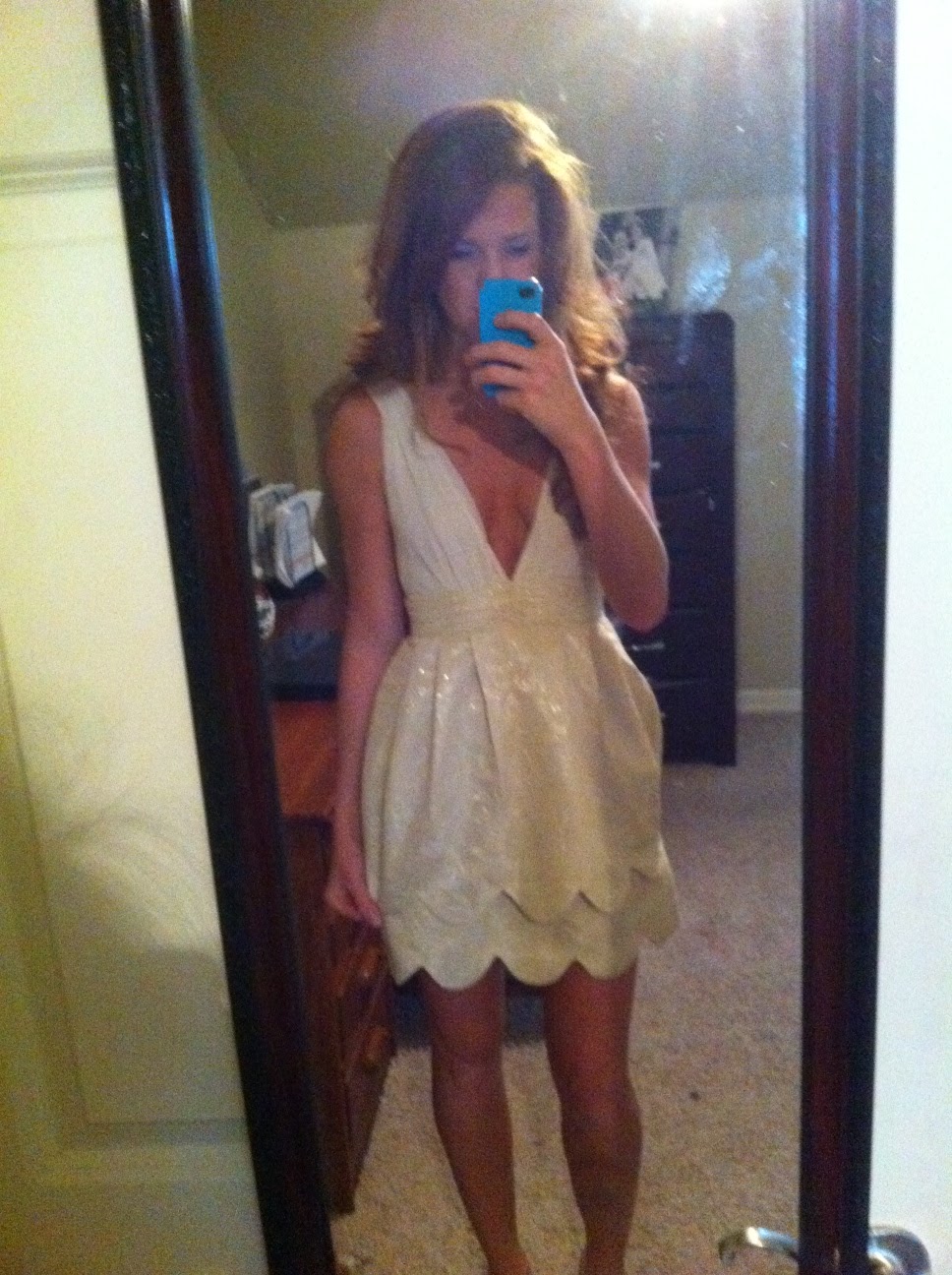My older sister’s gorg one shoulder dress is H&M and my white dress is BCBG