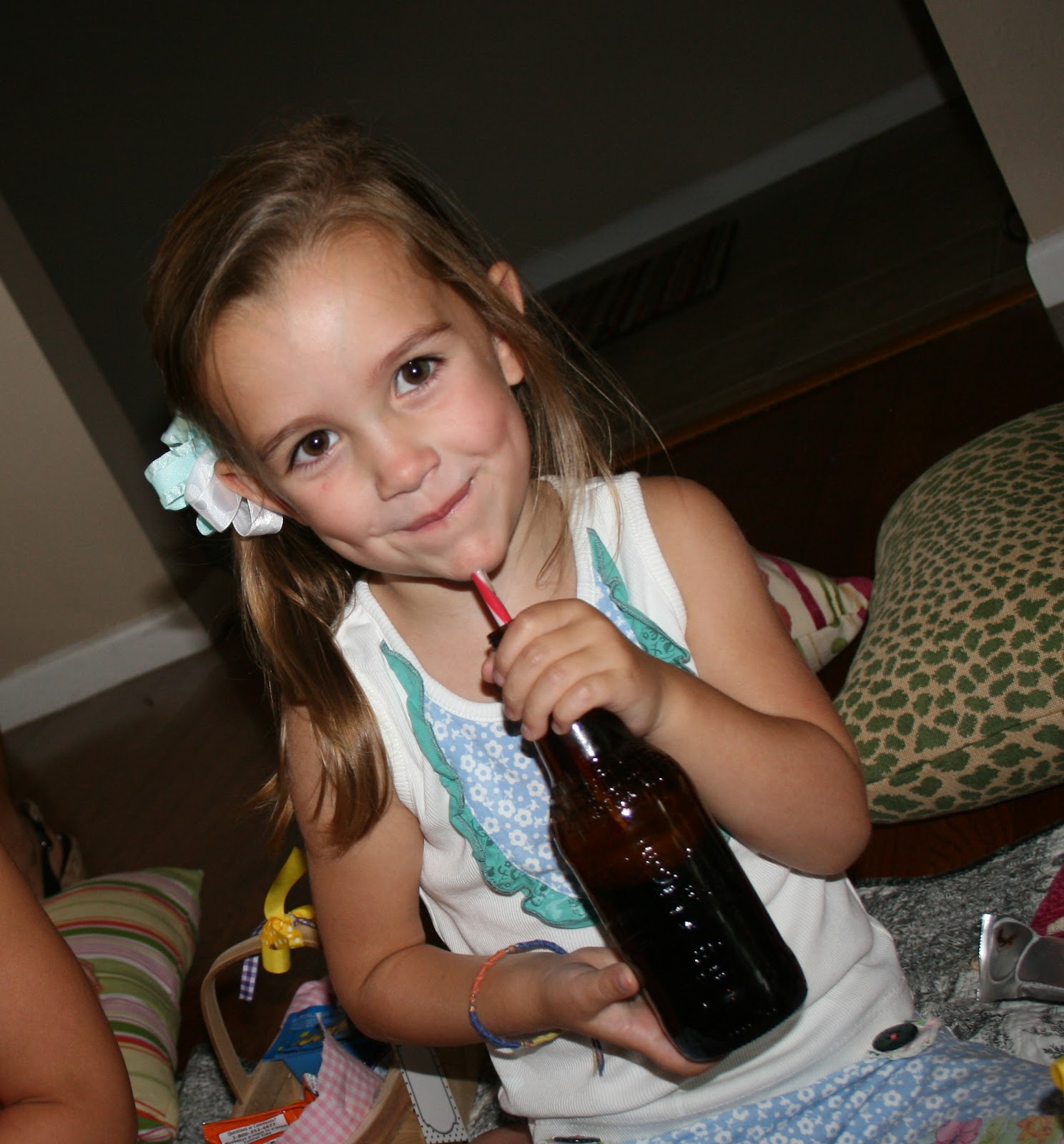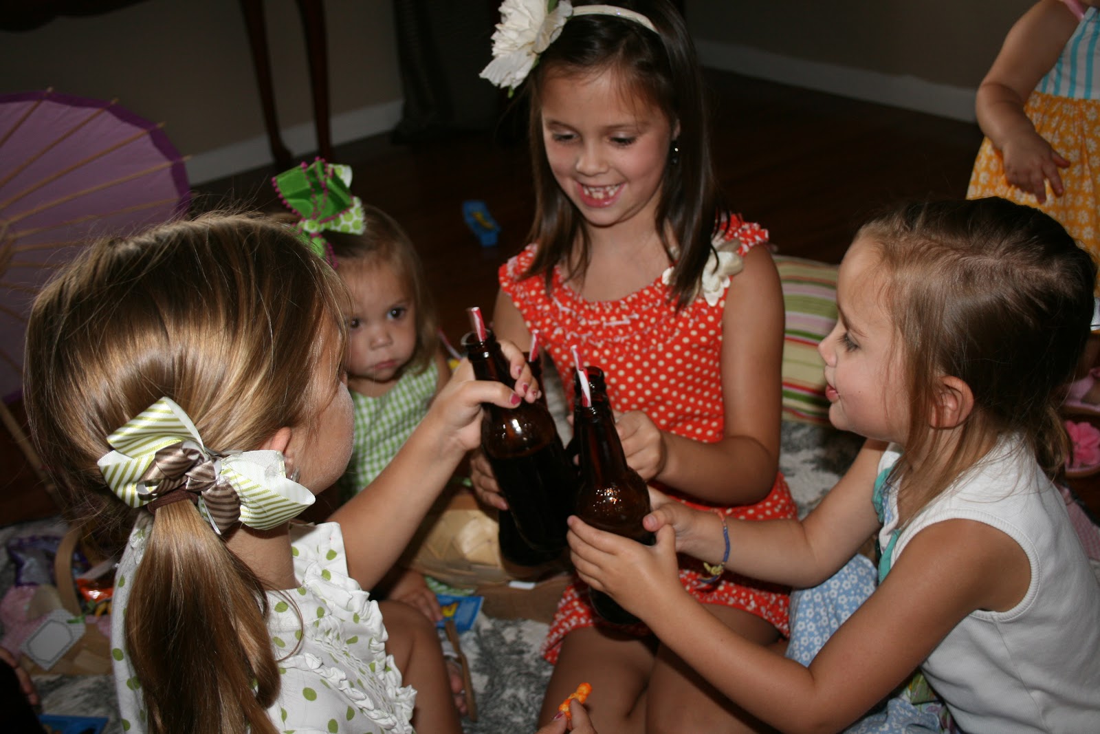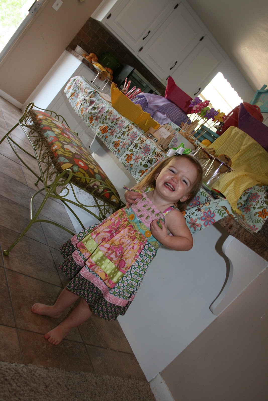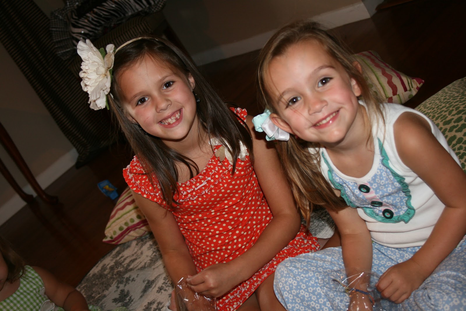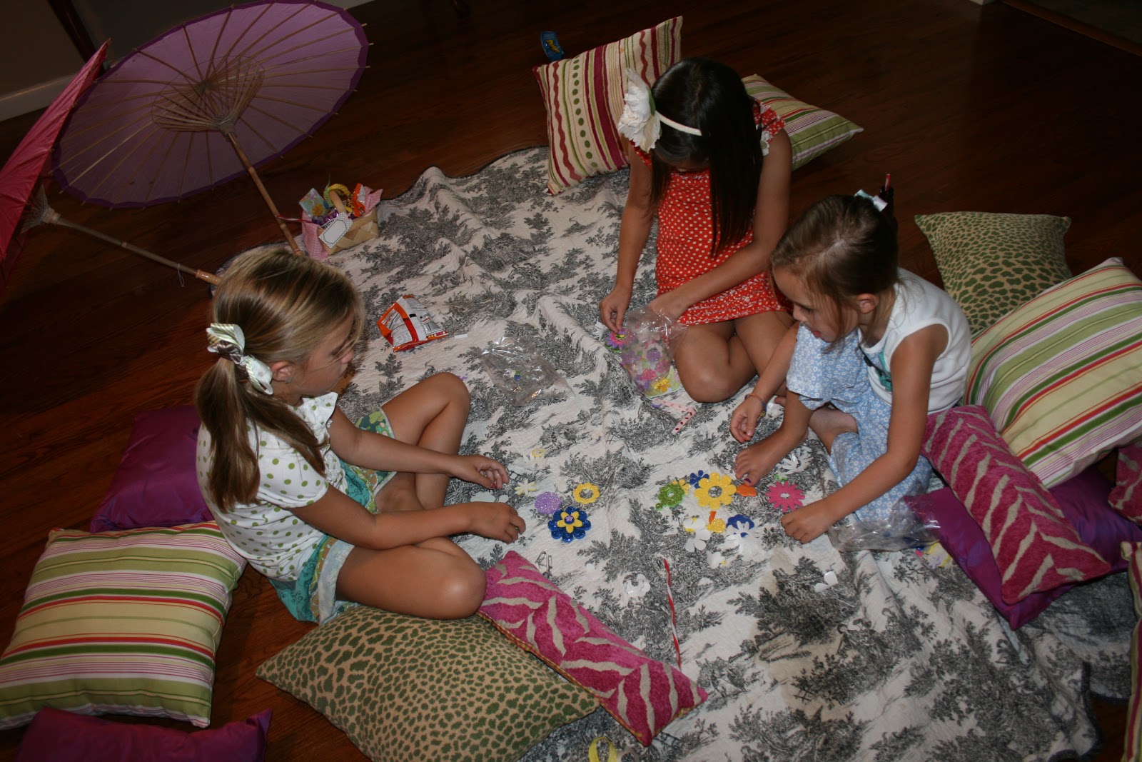 Saturday I got up early and headed over to Boni’s to start decorating. I just LOVED this theme. Its hard to think of a theme for a younger child and even harder when its 100+ degrees outside! So the idea of an indoor picnic came to mind and I ran with it. I wanted the picnic to look like a lounge area. My mom makes pillows for every season, so it was a easy choice to use her summer ones. The colors screamed loungy summer. I then got some umbrellas and of course picnic baskets. I made picnic baskets for each child and used Catherine’s favorite foods, pb&j, cheetos, dunkaroos,and rootbeer. I then blew up blue and white balloons and put them above the picnic area to resemble the sky. It turned out soooo cute! Then it was time to decorate the cookie/lemonade table. I saw a CUTE picture online of a lemonade stand so I made a smaller version for this table. It was so easy to put together and so adorable. I baked cookies on a stick and them placed them on top of chocolate and sprinkle rimmed glasses of milk. I also had three baskets of goodies on the table. I found adorable picket fence pieces, picnic chairs and a tiny puppy(Catherine LOVES puppys) and used them for decoration as well. The colors were just so so perfect. I loved how it turned out. After the kiddos ate their lunches, I had flower pin making kits for each kid to make. They loved putting them together. The party was so much fun and Catherine was smiling the entire time. Here are TONS of pics : )