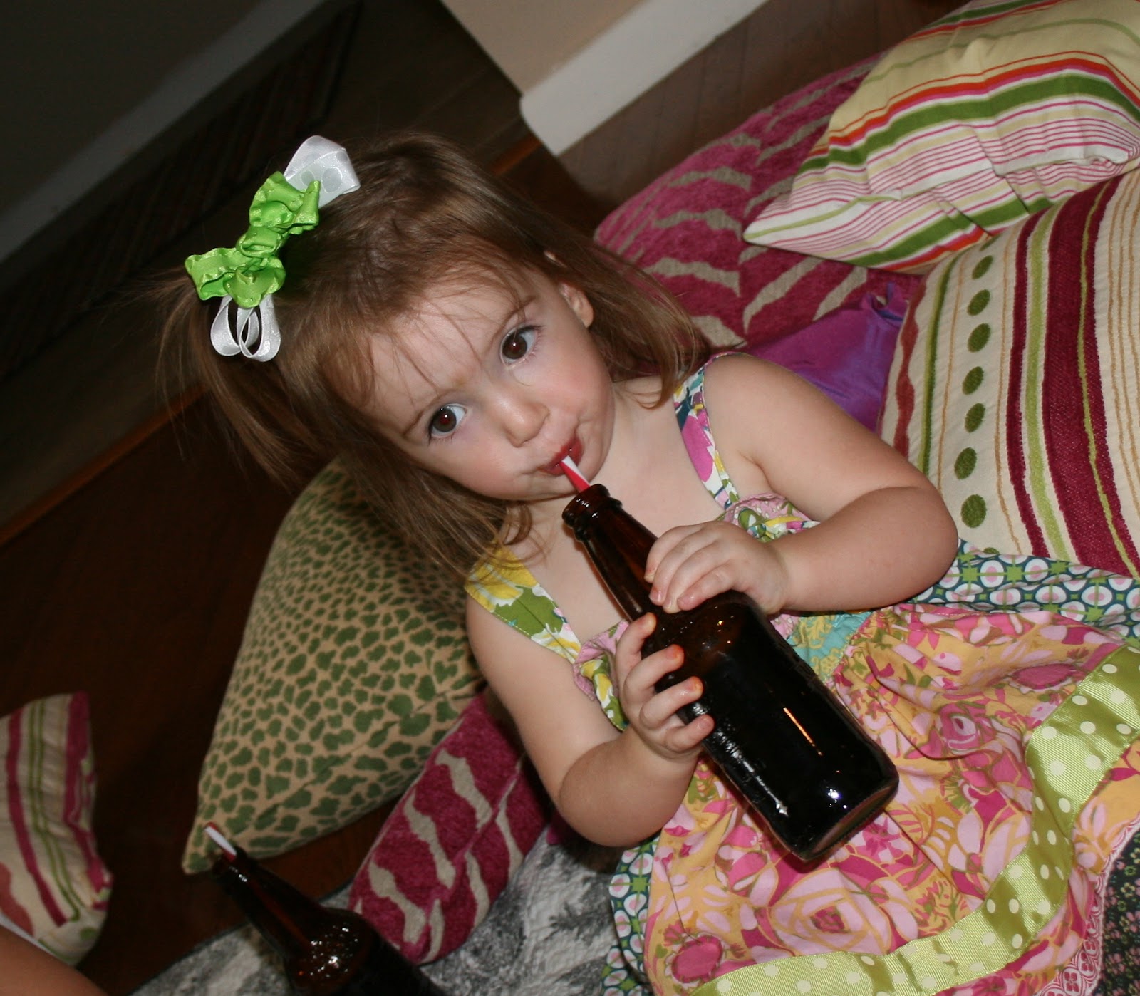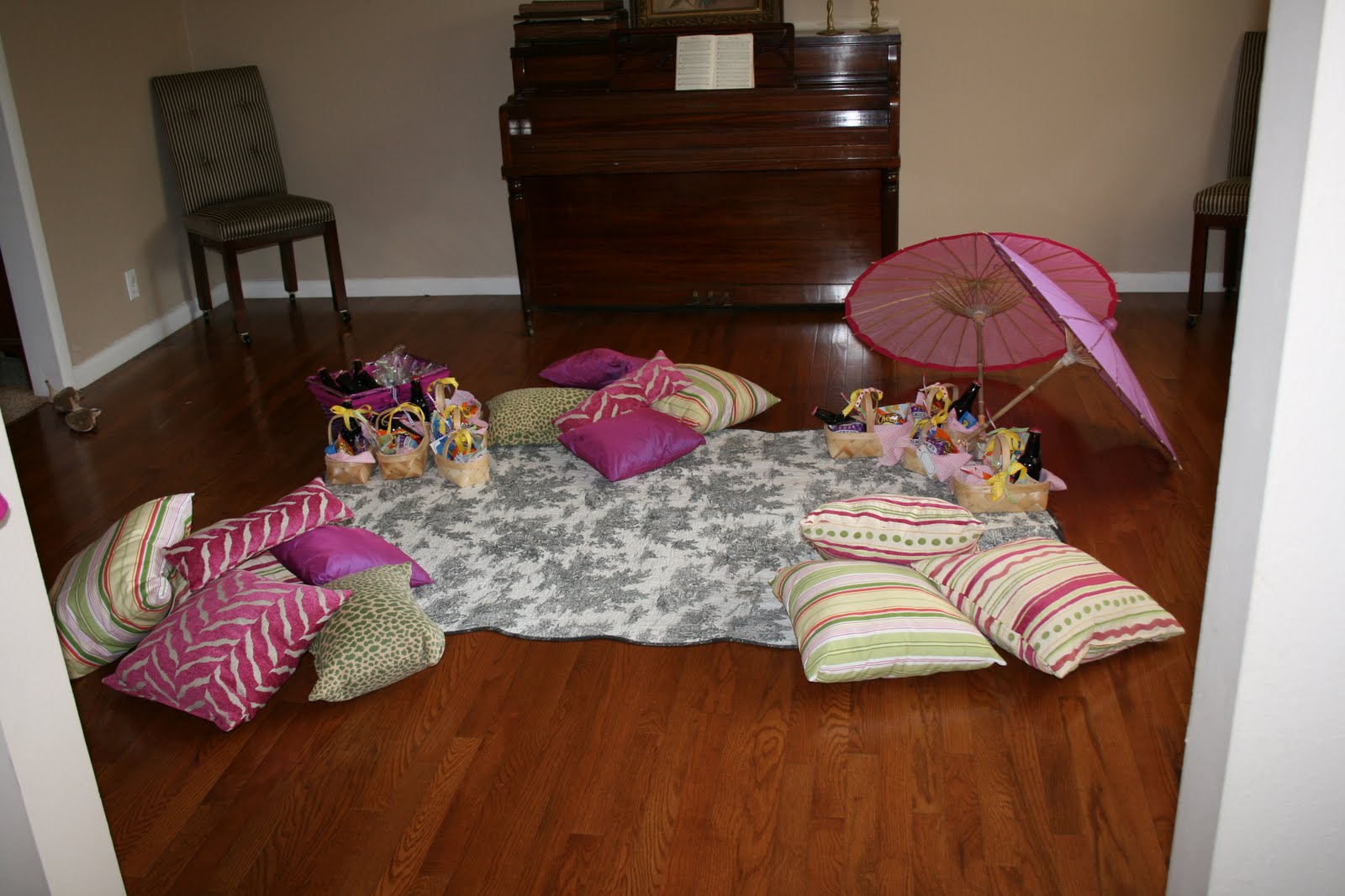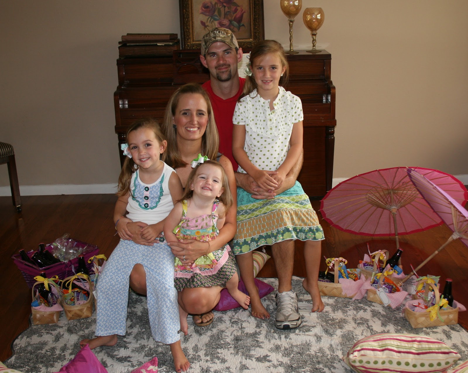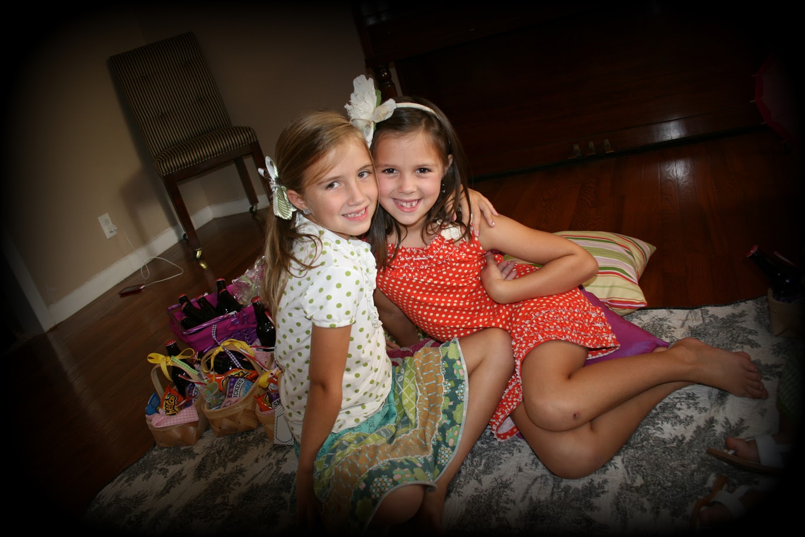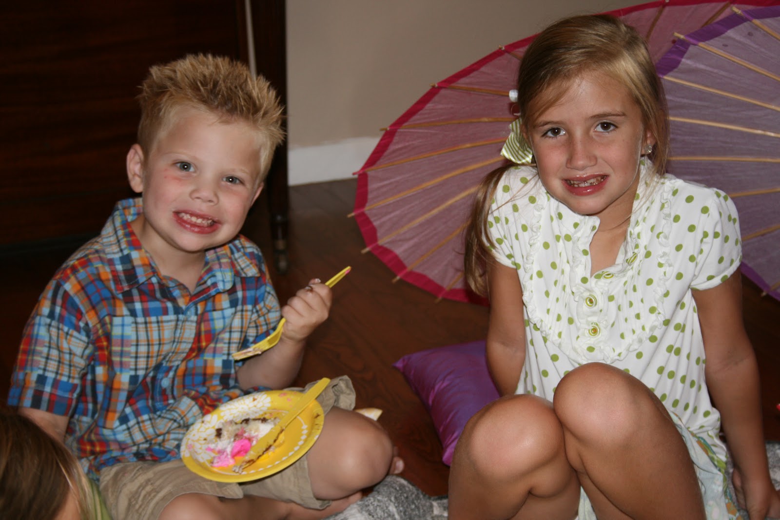 Saturday I got up early and headed over to Boni’s to start decorating. I just LOVED this theme. Its hard to think of a theme for a younger child and even harder when its 100+ degrees outside! So the idea of an indoor picnic came to mind and I ran with it. I wanted the picnic to look like a lounge area. My mom makes pillows for every season, so it was a easy choice to use her summer ones. The colors screamed loungy summer. I then got some umbrellas and of course picnic baskets. I made picnic baskets for each child and used Catherine’s favorite foods, pb&j, cheetos, dunkaroos,and rootbeer. I then blew up blue and white balloons and put them above the picnic area to resemble the sky. It turned out soooo cute! Then it was time to decorate the cookie/lemonade table. I saw a CUTE picture online of a lemonade stand so I made a smaller version for this table. It was so easy to put together and so adorable. I baked cookies on a stick and them placed them on top of chocolate and sprinkle rimmed glasses of milk. I also had three baskets of goodies on the table. I found adorable picket fence pieces, picnic chairs and a tiny puppy(Catherine LOVES puppys) and used them for decoration as well. The colors were just so so perfect. I loved how it turned out. After the kiddos ate their lunches, I had flower pin making kits for each kid to make. They loved putting them together. The party was so much fun and Catherine was smiling the entire time. Here are TONS of pics : )