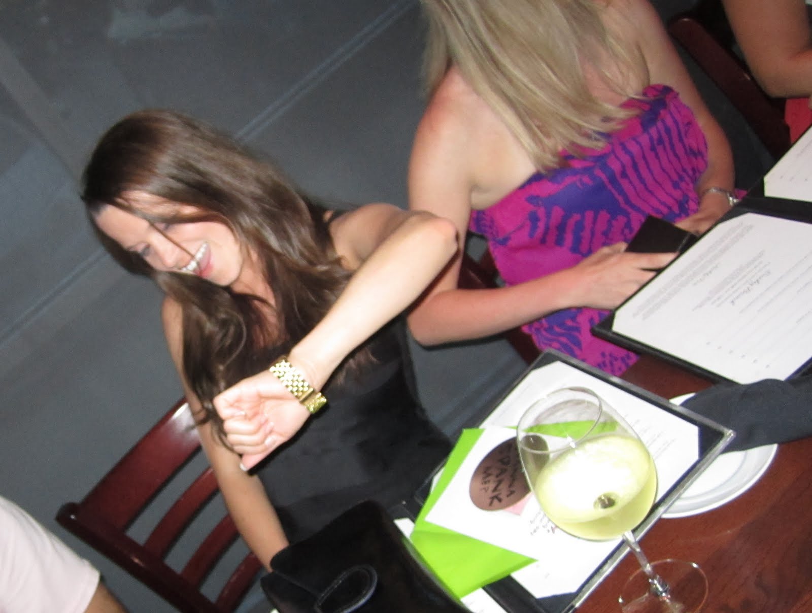 That night we got dolled up for a dinner with our boys. We had a huge group there to help celebrate. Delicious food, great drinks and fabulous company! I got together with a few of our friends to go in together to get Kristin a Michael Kors watch. She has been wanting one FOREVER! I tricked her and made her go shop with me and we tried on watches haha. Such a trickster : ) Needless to say she about died!