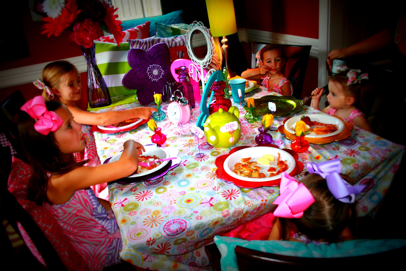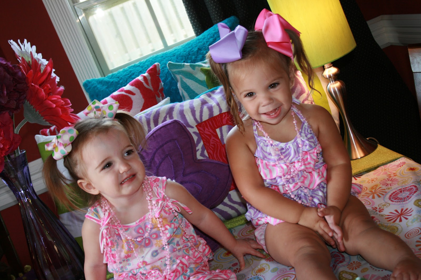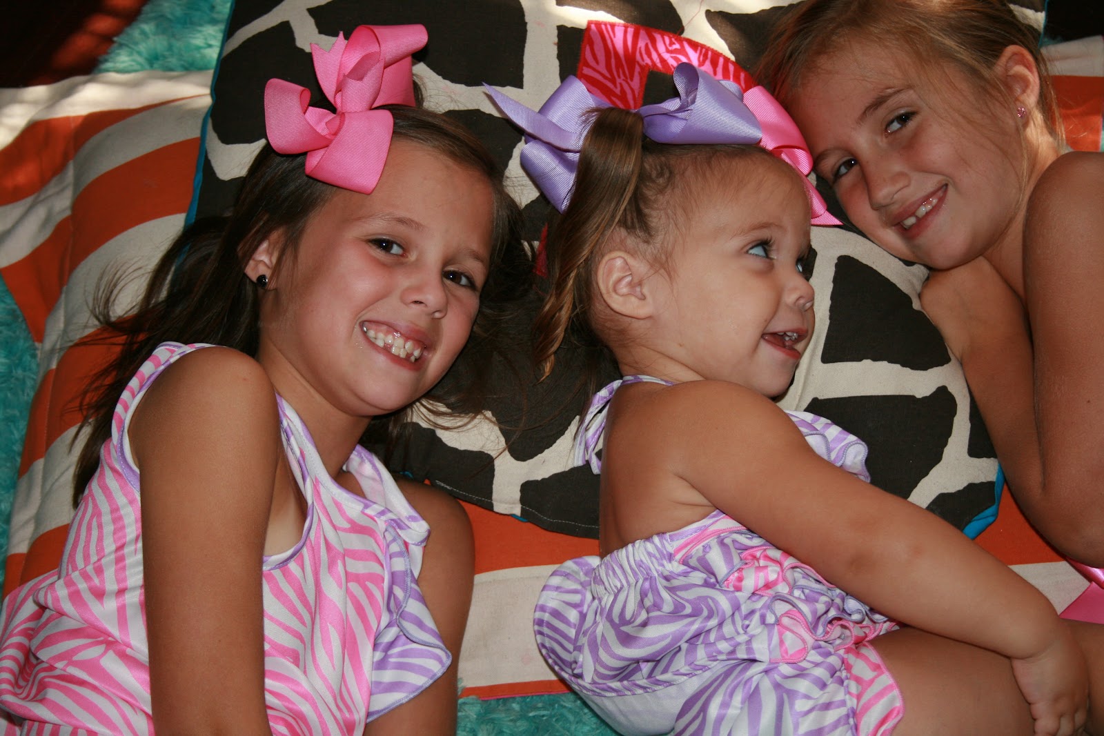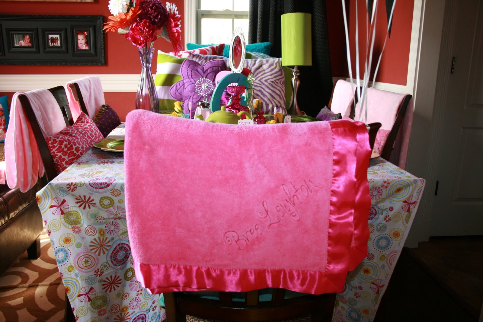 Saturday morning was PARTY time. On the way home from the Beach Rachel and I were talking about what we wanted to do for Bree’s party. Bree LOOVES “CanCakes” (pancakes) so breakfast was the theme. Then I saw awhile back a party on hostess with the mostess where she made the party table look like a bed. PERFECT! We went to hobby lobby and picked up all sorts of things, an alarm clock, the chargers, the perfume bottles etc. We wanted it to be a girly, bright party. I thought it would be cute to do mini blankets too for the kids as part of their favors, it turned out soo cute. We used personalized pillows for the head of the table and also a bedside lamp and vase full of flowers. It literally took me 30 minutes to set this up! So easy and absolutely ADORABLE! Rachel cooked up some amazing breakfast foods as well- A cancake bar, a breakfast casserole, breakfast sandwiches and a fruit tray. It was delicious. Rachel also got cupcakes and put doughnut holes on top of them to go with the theme. Rachel also got a box of cereal and toothbrush to give each kids. precious! The kiddos looked precious in their pjs too. I just loved this party so much and the kids had a ball!