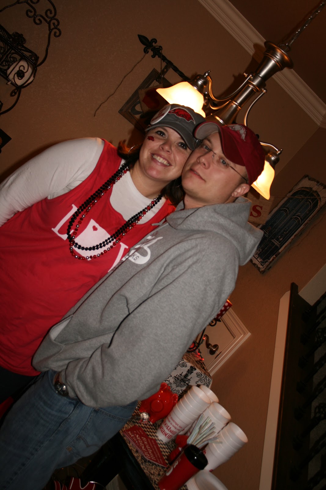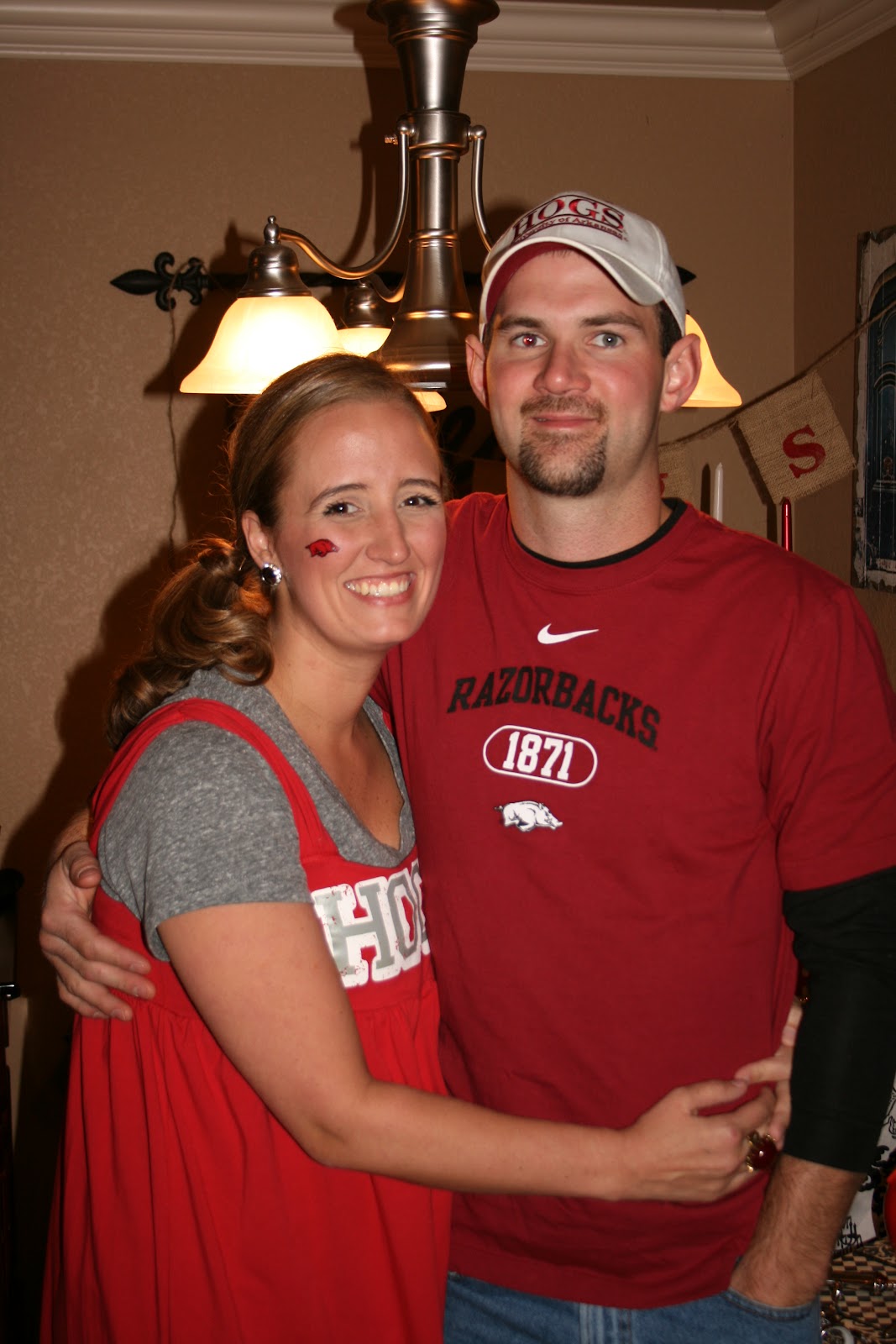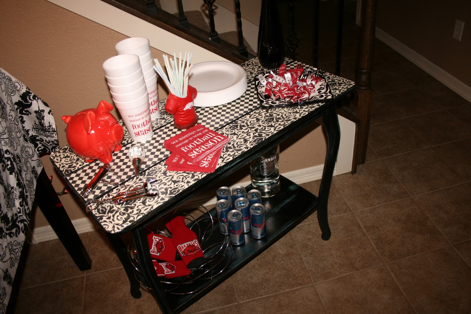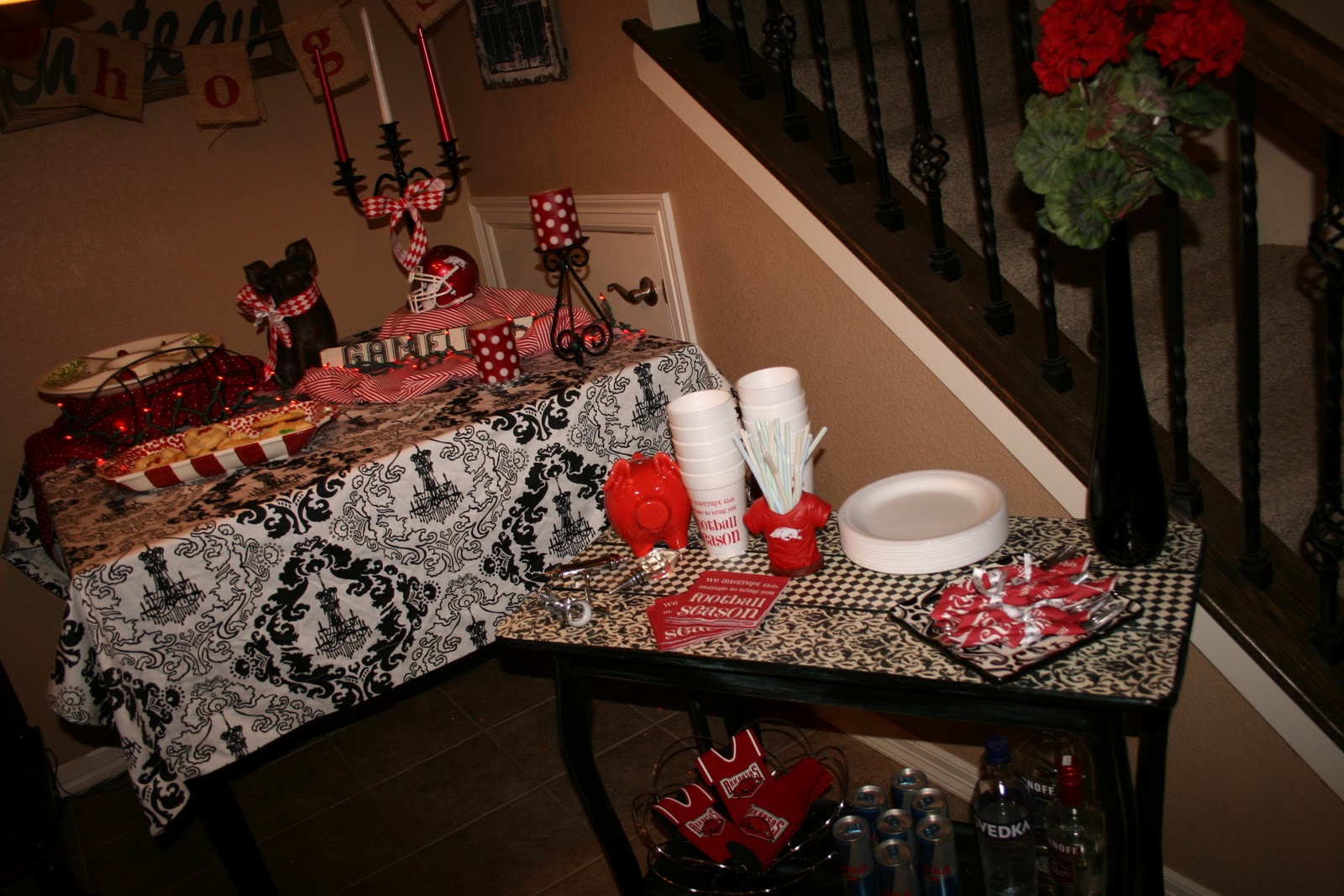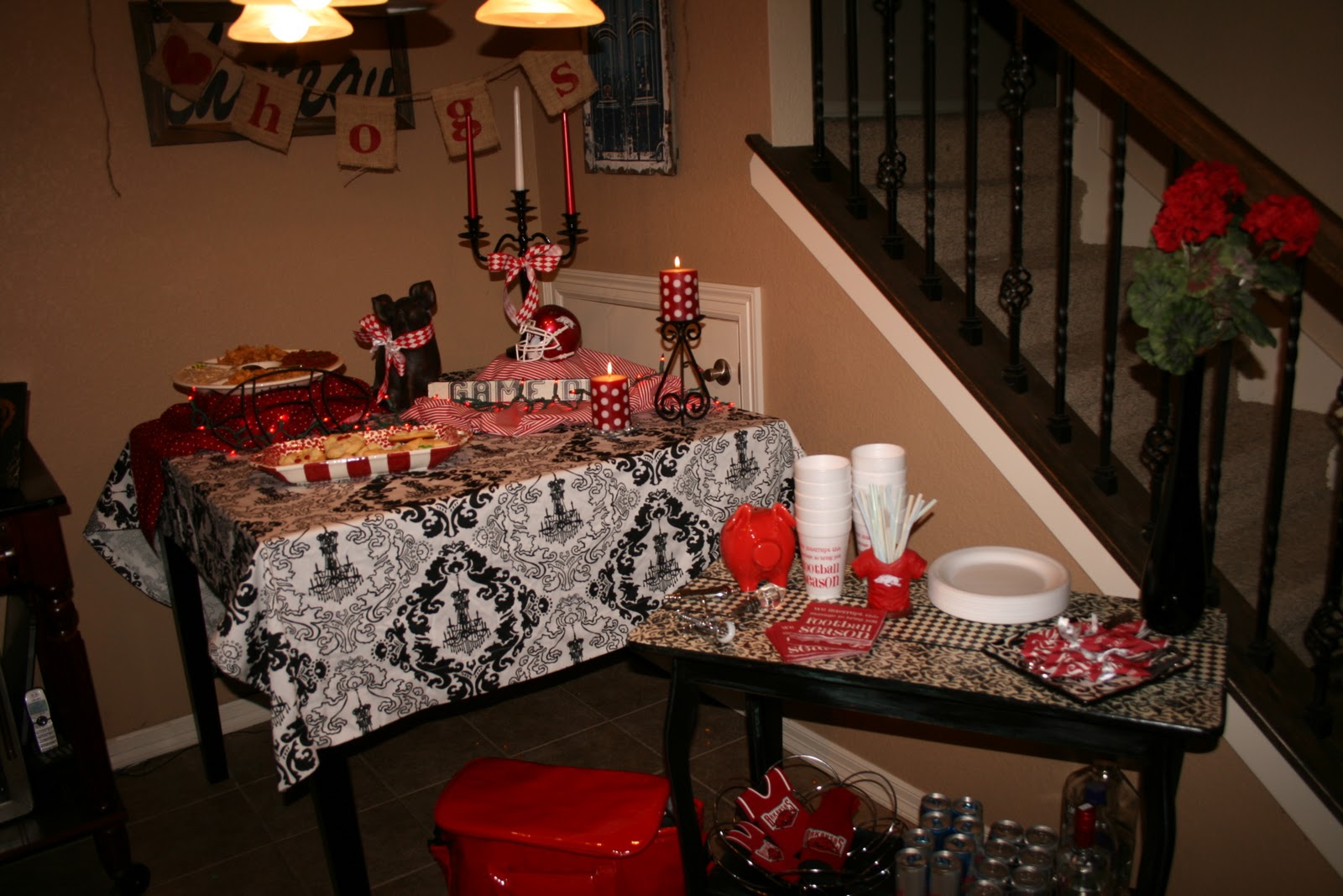 Saturday morning I helped my sister set up a wedding shower. It turned out so cute, and I forgot my camera! oops! We also woke up to RAIN..boo. So with the torrential downpour everyone decided to come over to our place. Que tara running around town getting decorations haha. You know me, I gotta make a cute table haha. We had tons of fun eating yummy appetizers and delicious hot wings. Then we headed to the game! I just love this time of year!