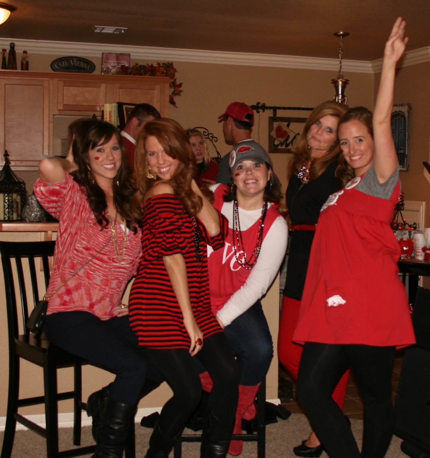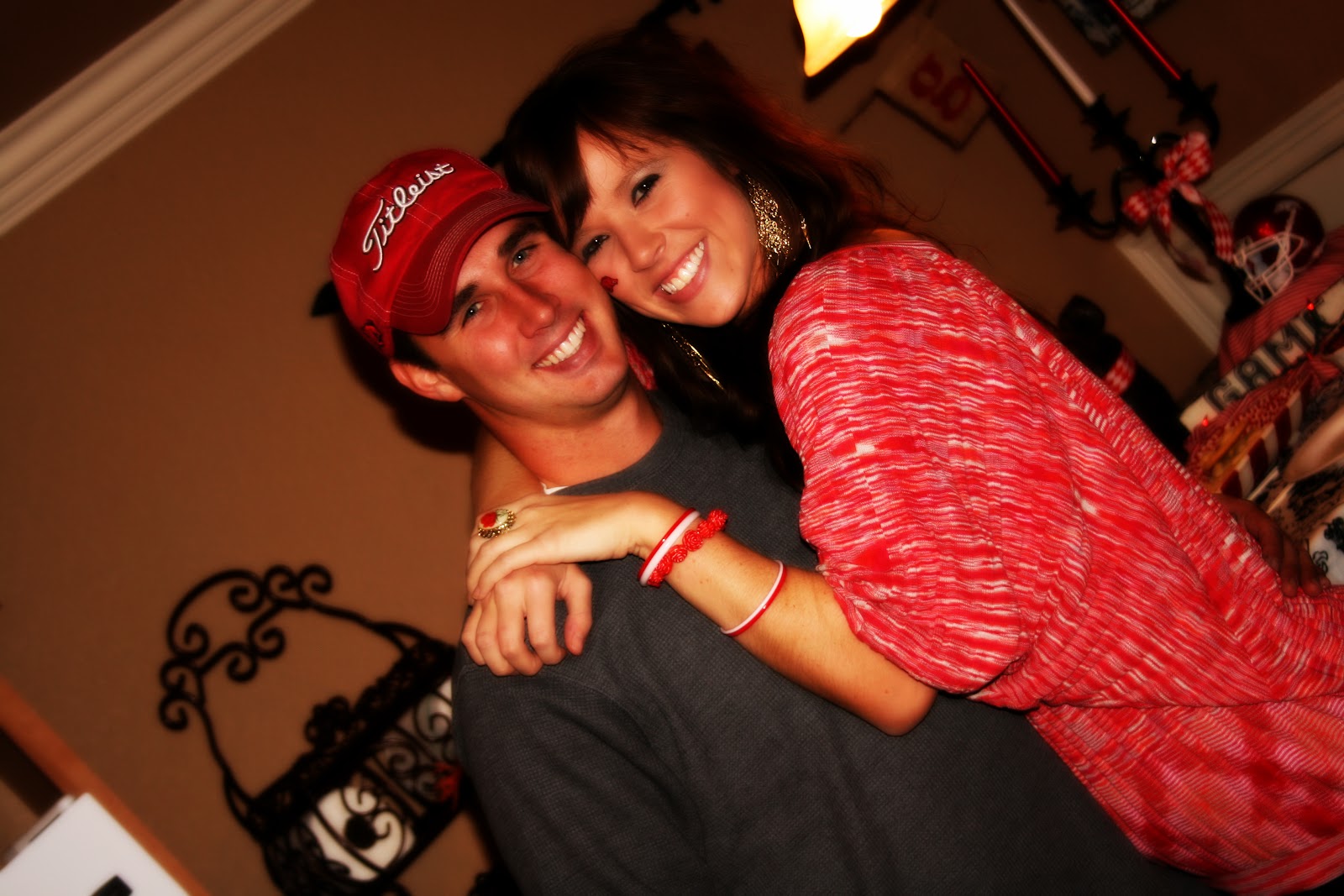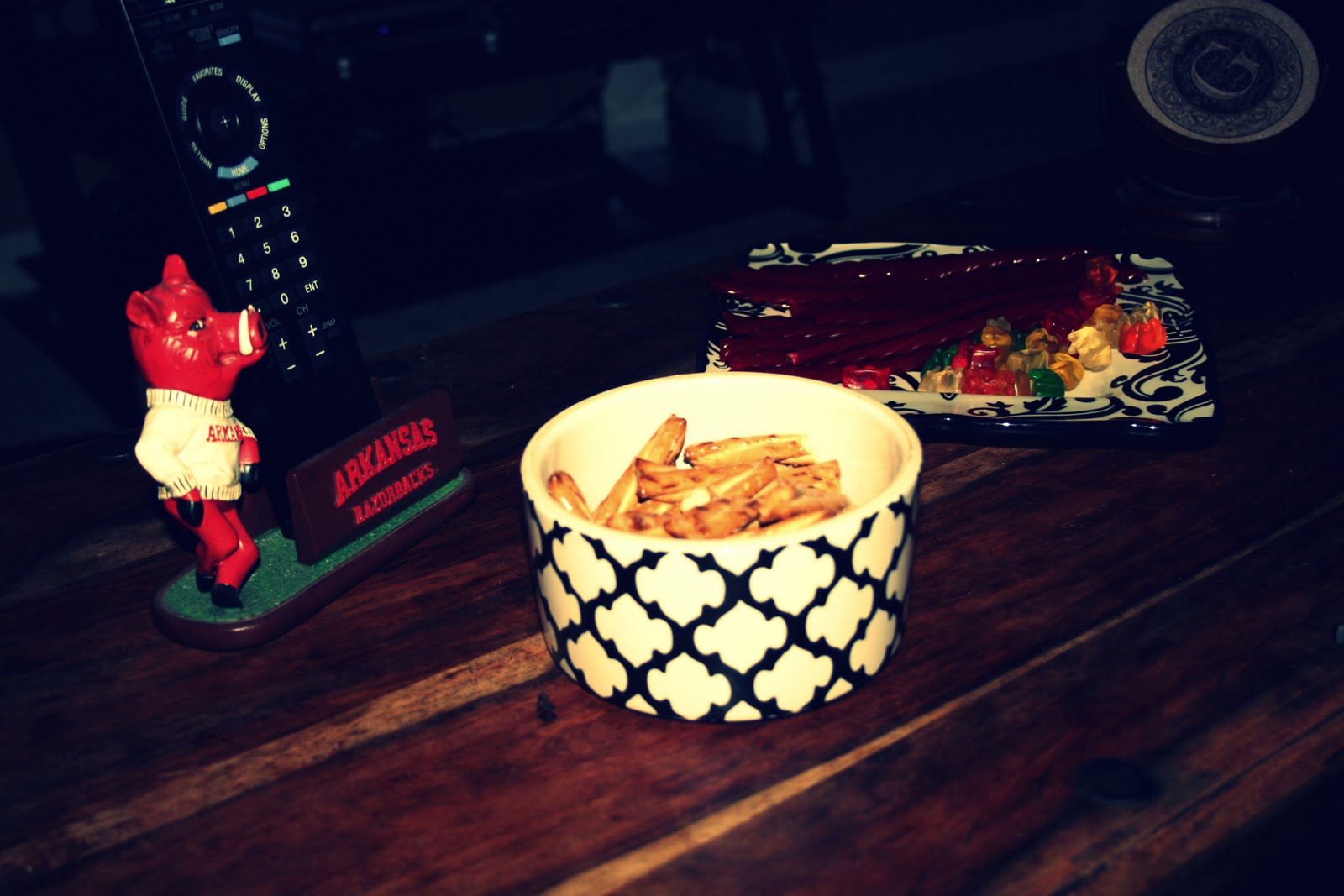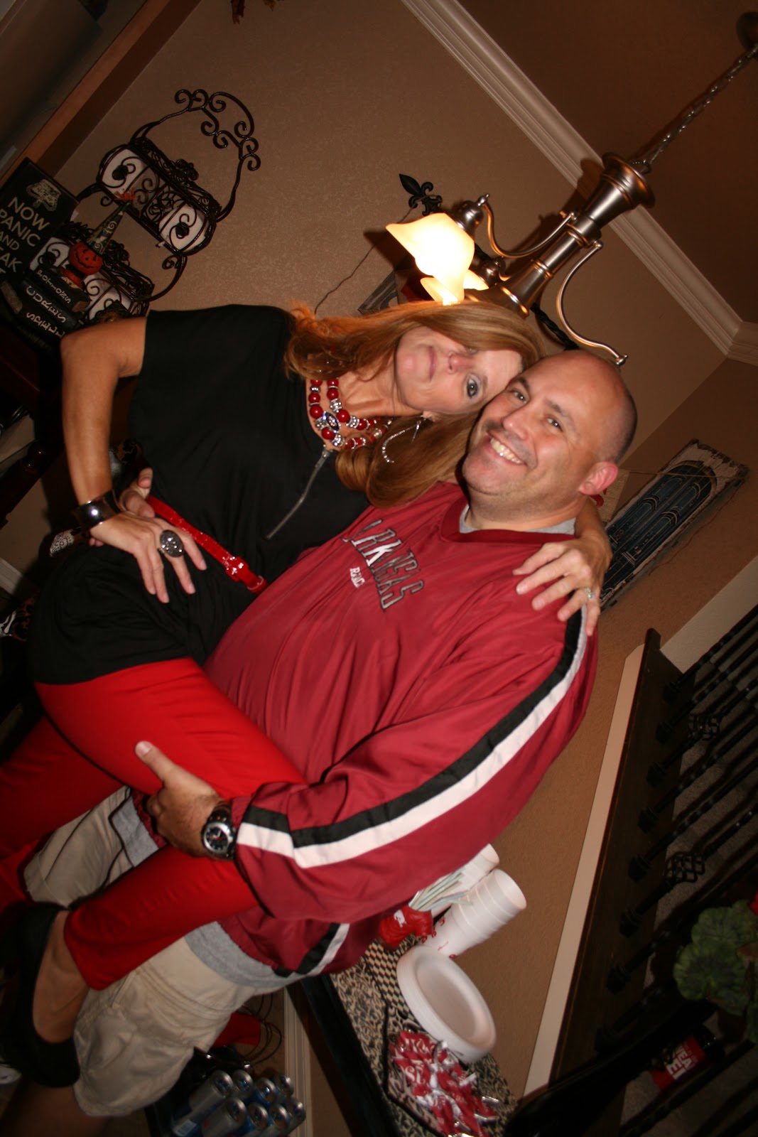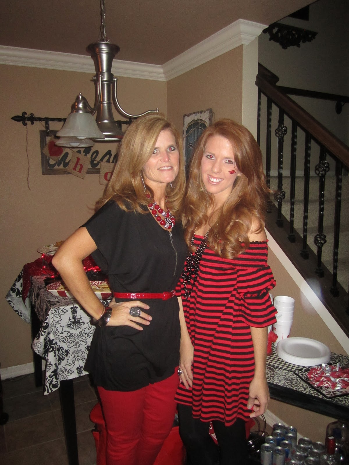 Saturday morning I helped my sister set up a wedding shower. It turned out so cute, and I forgot my camera! oops! We also woke up to RAIN..boo. So with the torrential downpour everyone decided to come over to our place. Que tara running around town getting decorations haha. You know me, I gotta make a cute table haha. We had tons of fun eating yummy appetizers and delicious hot wings. Then we headed to the game! I just love this time of year!