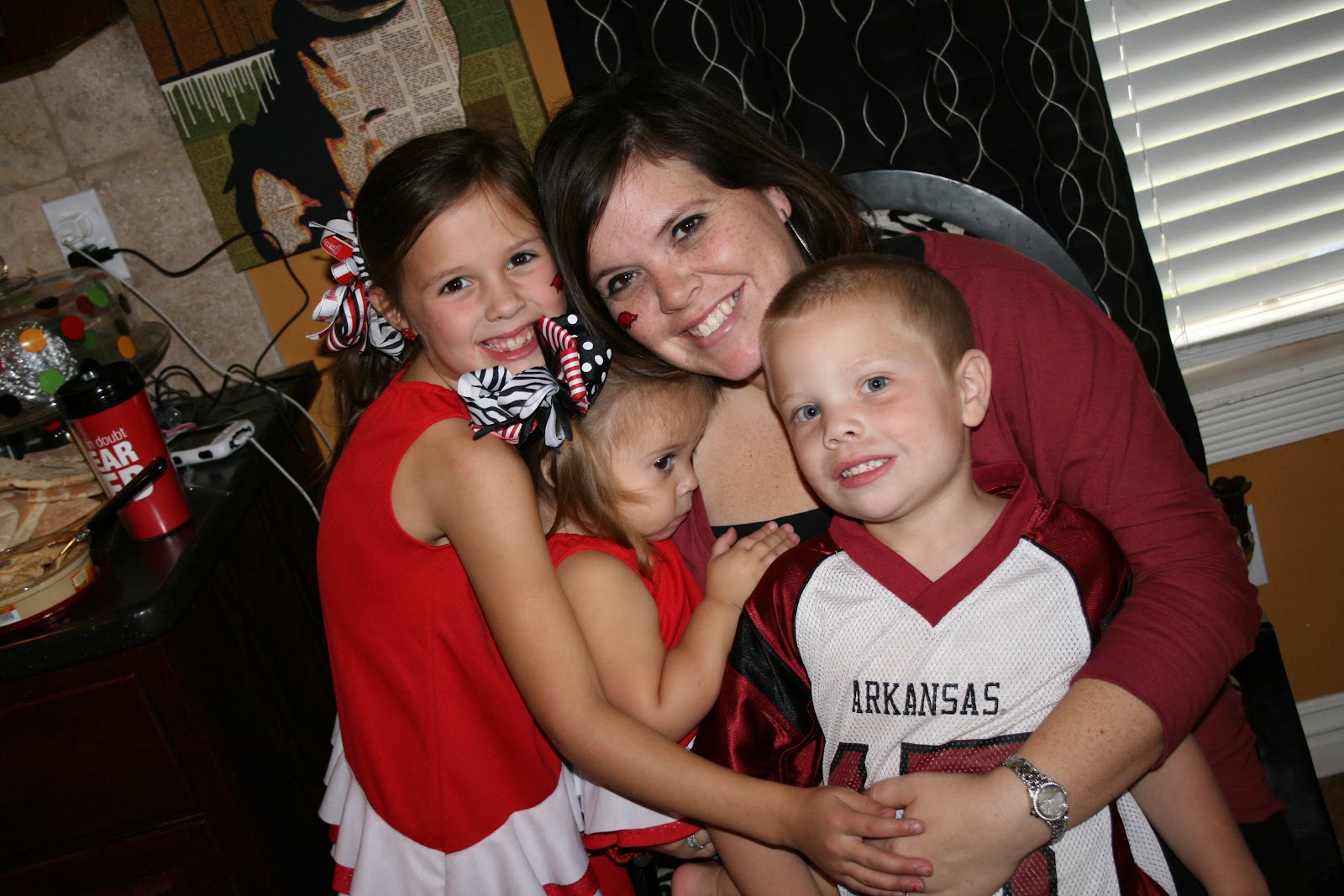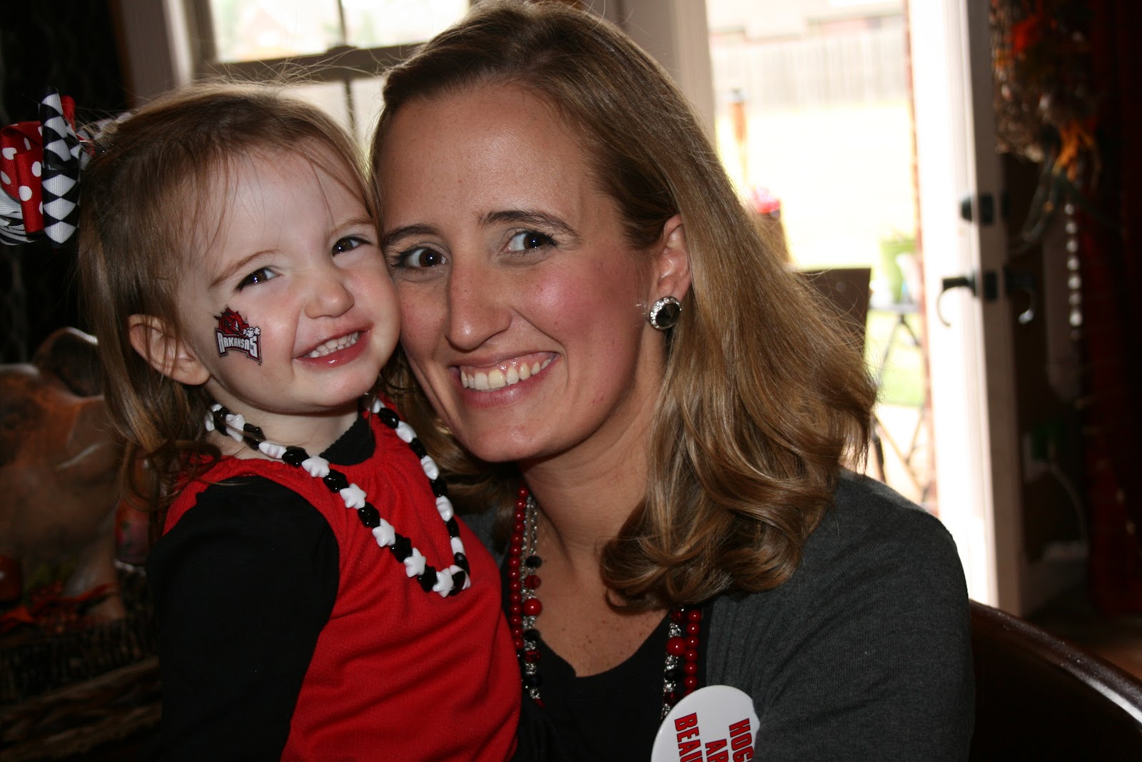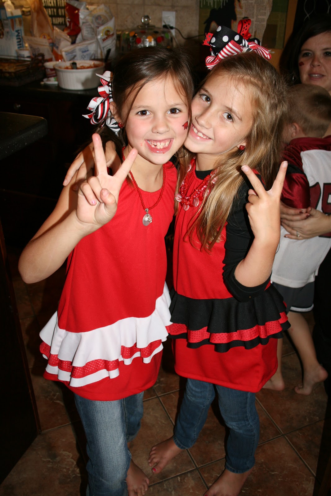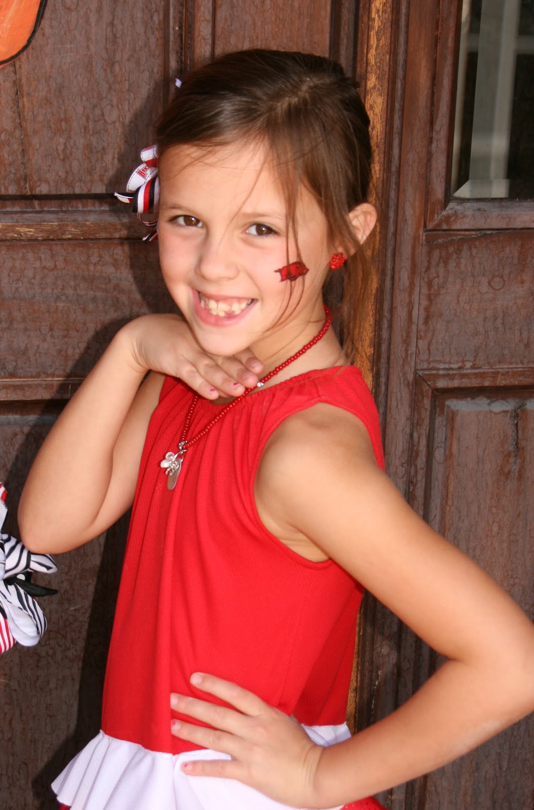 Saturday was Hog football day! We got our red on and headed over to my sisters to watch the game. It didnt turn our like we hoped but we still had a great time eating chili and yummy cake. I susprised all the girls wtih these precious bracelets from Impressions! They are adorable. I got Claire bear the necklace version and she loved it too.