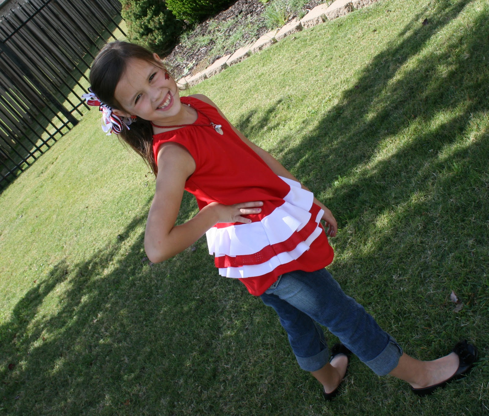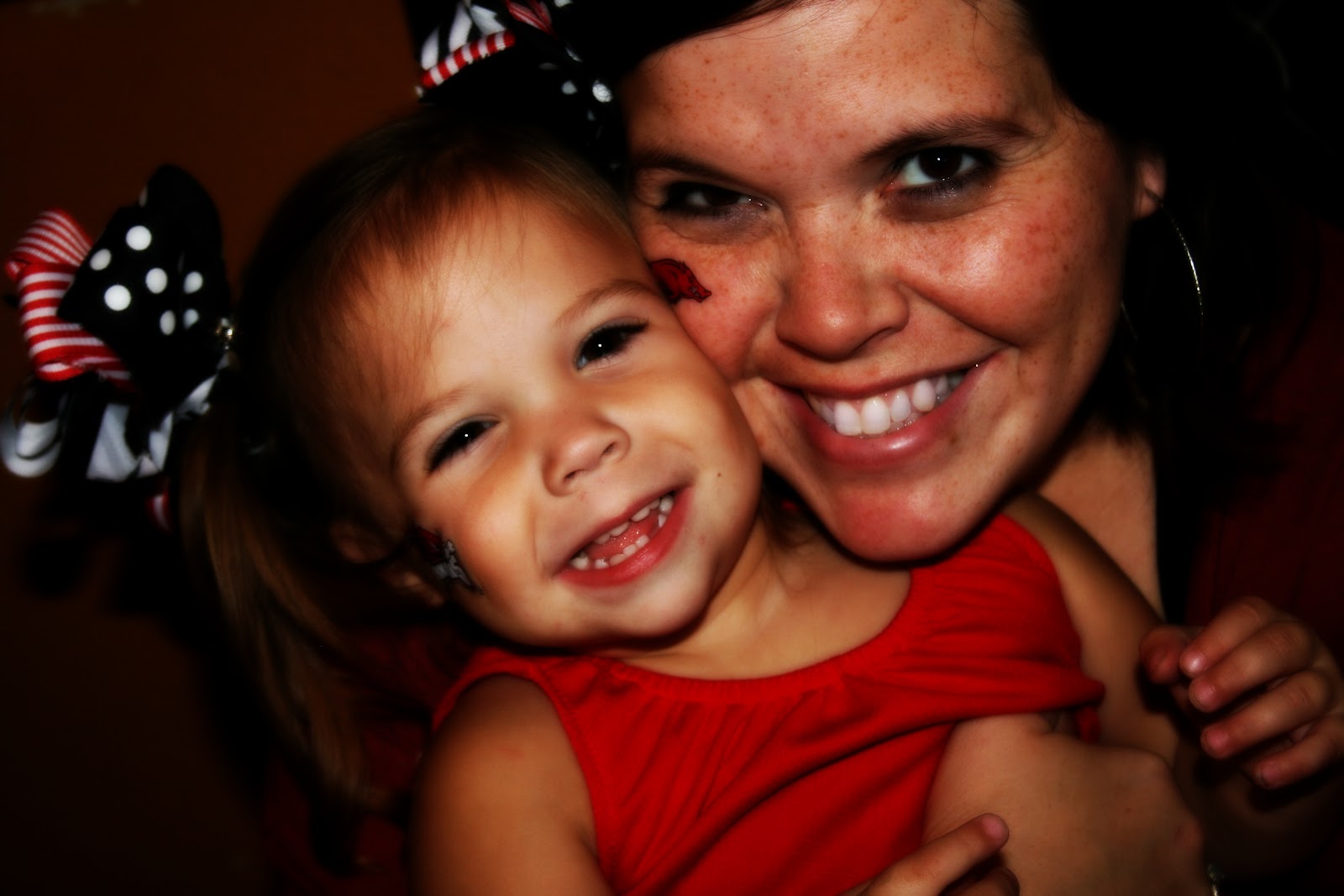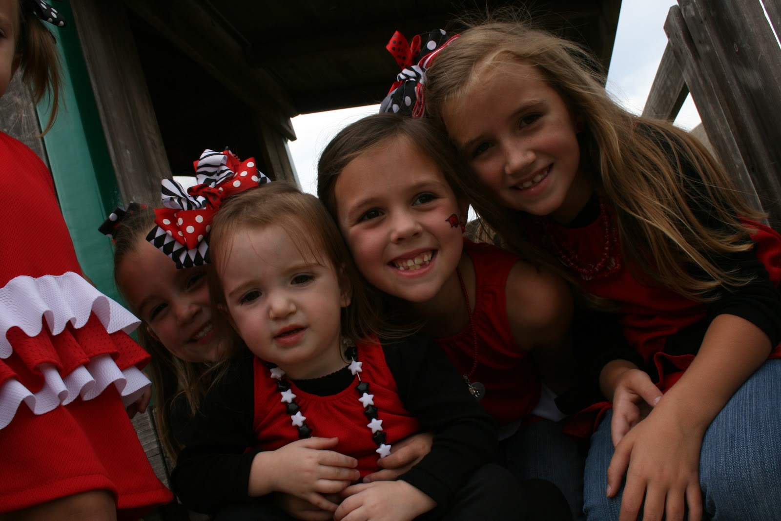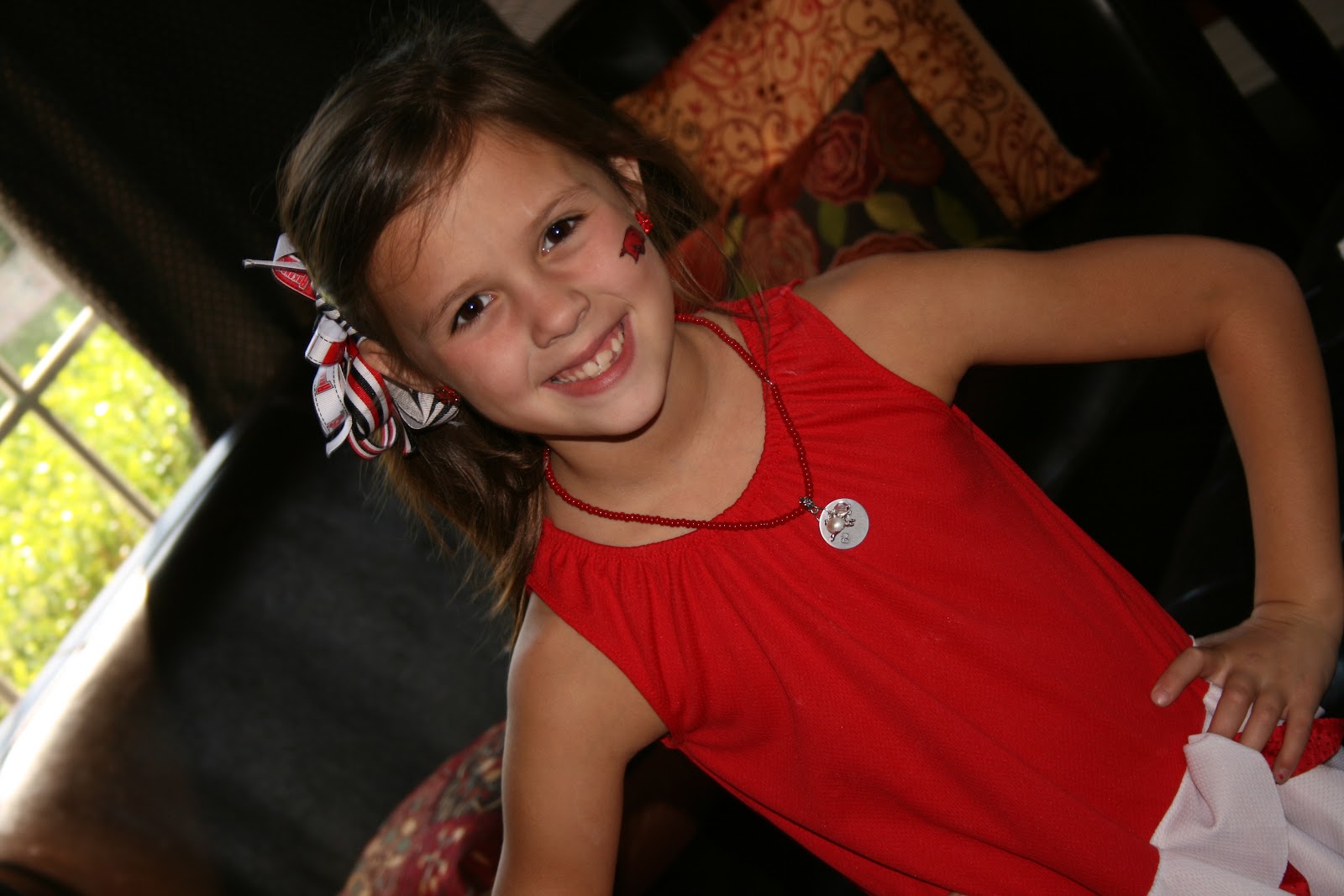 Saturday was Hog football day! We got our red on and headed over to my sisters to watch the game. It didnt turn our like we hoped but we still had a great time eating chili and yummy cake. I susprised all the girls wtih these precious bracelets from Impressions! They are adorable. I got Claire bear the necklace version and she loved it too.