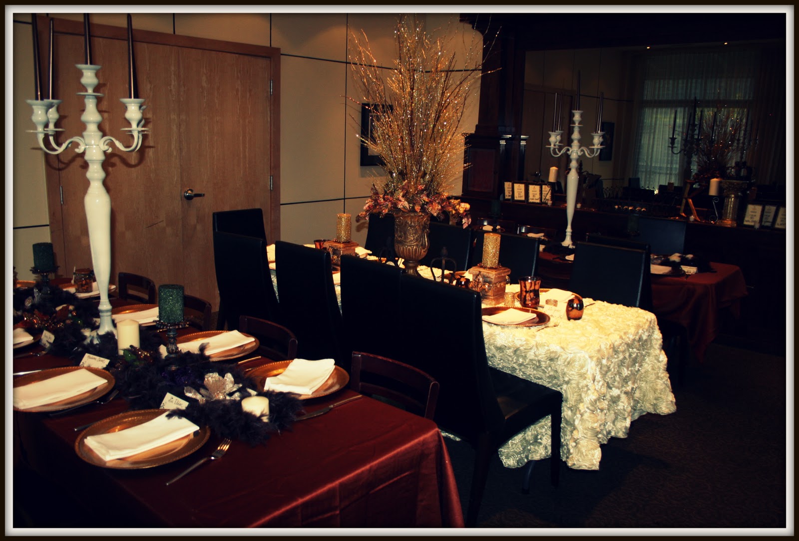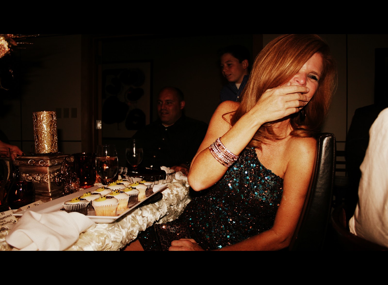 Saturday was PARTY day! I had been planning this party for about a month and have been SO excited about it. My mom is the definition of glamour and I wanted it to be over the top and Sparkly! The guests arrived on a red carpet and I set up a picture area with crowns and a fun frame. It was a huge hit. I had an arrangement made at Sign Sealed and Delivered and boy did they deliver. It was the perfect centerpiece for the head table. The gorgeous rossete table cloth came from eventures as well as the two huge candleabras, stunning. I then got brown fur boas that were used as table runners. I places sparkly flowers thru out the runners as well as tons and tons of candles. I worked with Bordinos to make the cutest personlized menus that were placed on a gold charger at each place setting. The boardroom at bordinos has a gorgeous chest and its a great back drop for the guest favors. I made each guest a dry erase “keep calm” board. I wrote different things on them like “50 is glamourous” “50 looks good” they turned our perfect. I added embelleshments to all the candle holders and had a clock at my moms place setting that was set for 4:59, the time she was born. The kids also got jars full of my moms favorite candies. The room had a candlelight glow, sparkled all night and was just absolutely perfect. My mom looked STUNning in her gorgeous dress and had the best night ever. Lets get to all the pics!