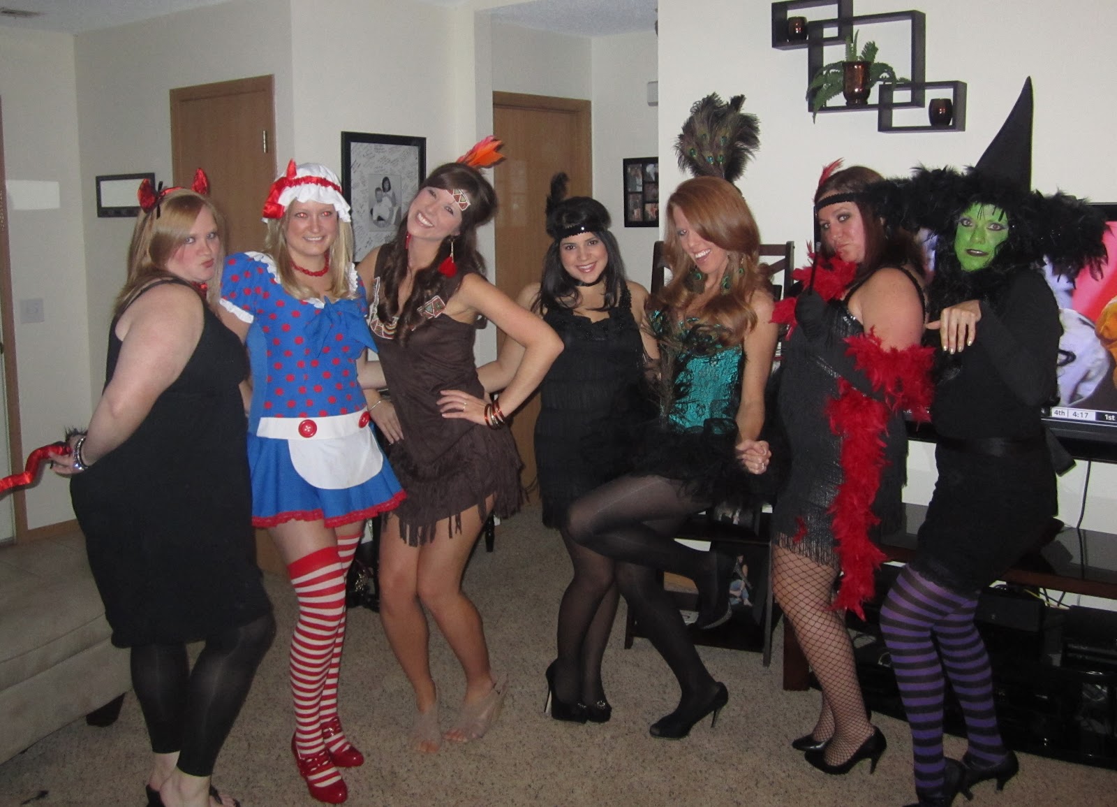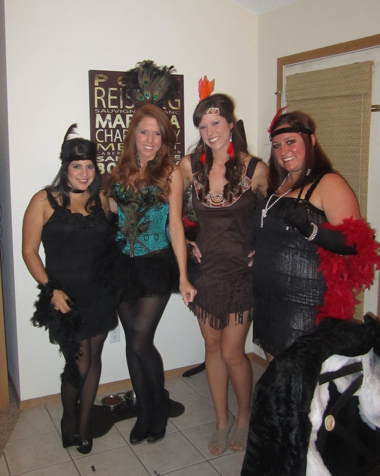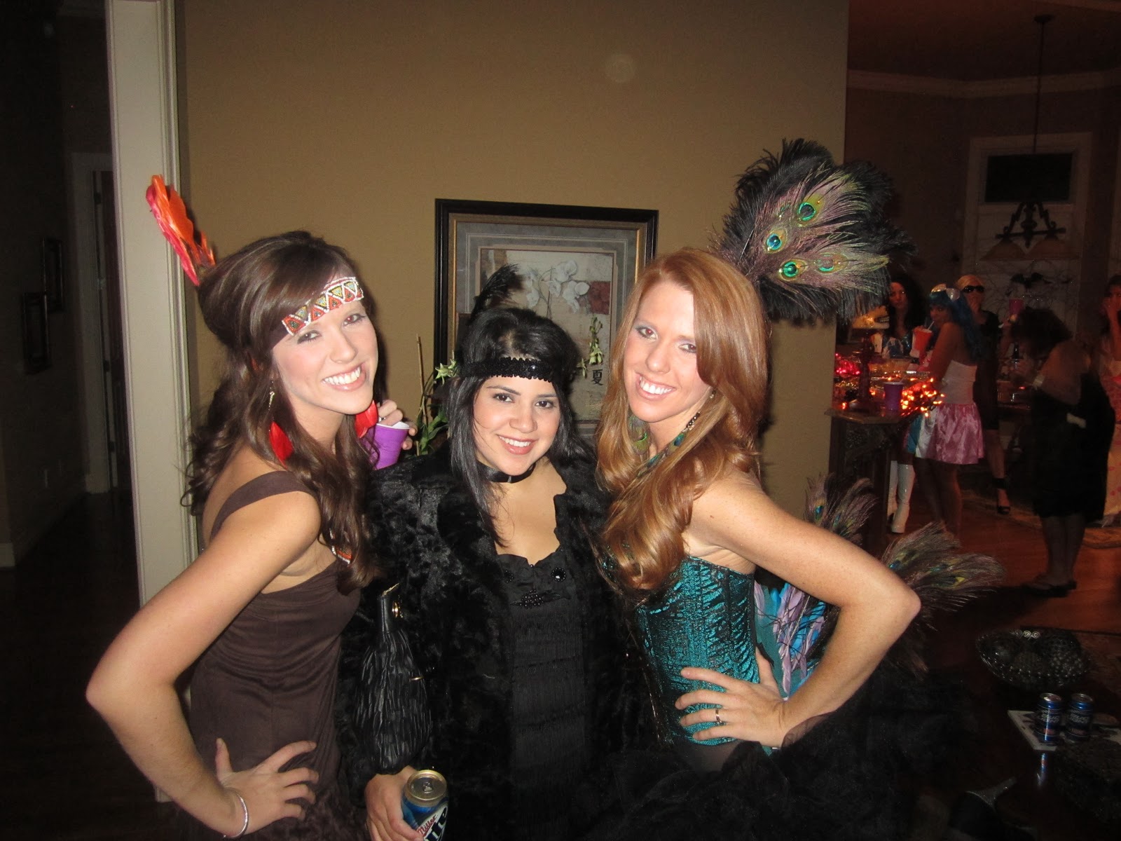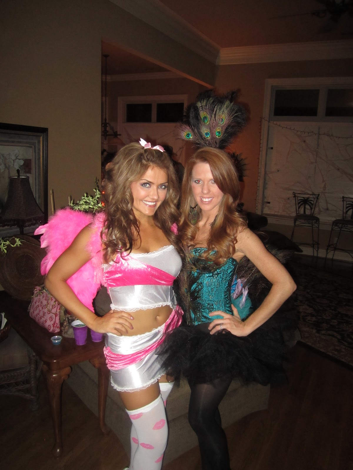 Saturday night was halloween party time! I got my peacock costume a couple weeks ago and aboslutley LOOOOVED it. All of us girls got dolled up and headed over to Jenn’s party first and then my dads party that I helped decorate. We had SUCH a great time. I just love seeing everyones costumes.
