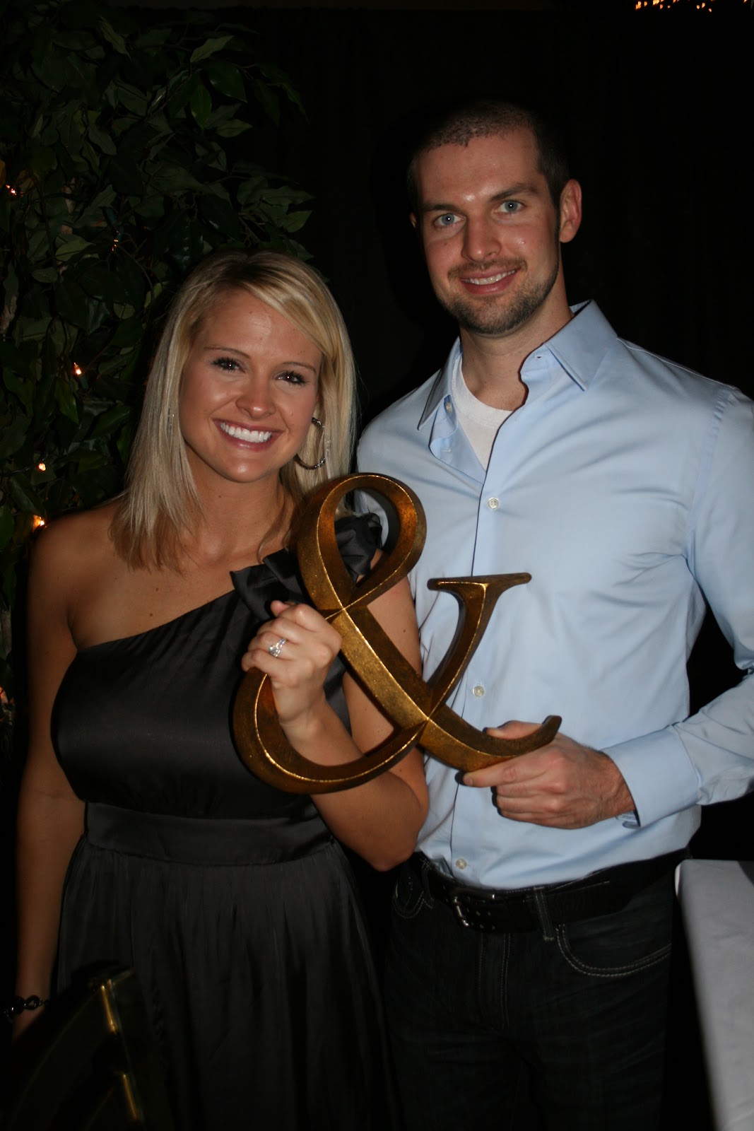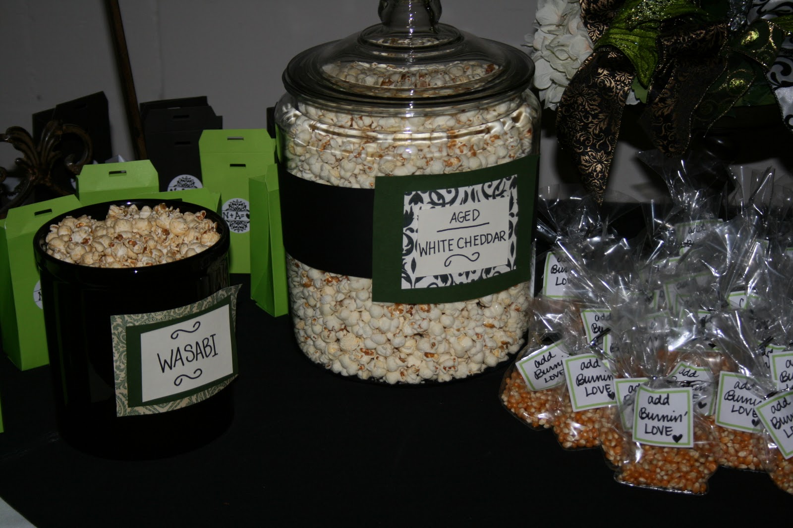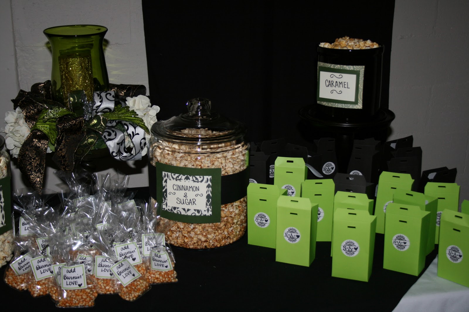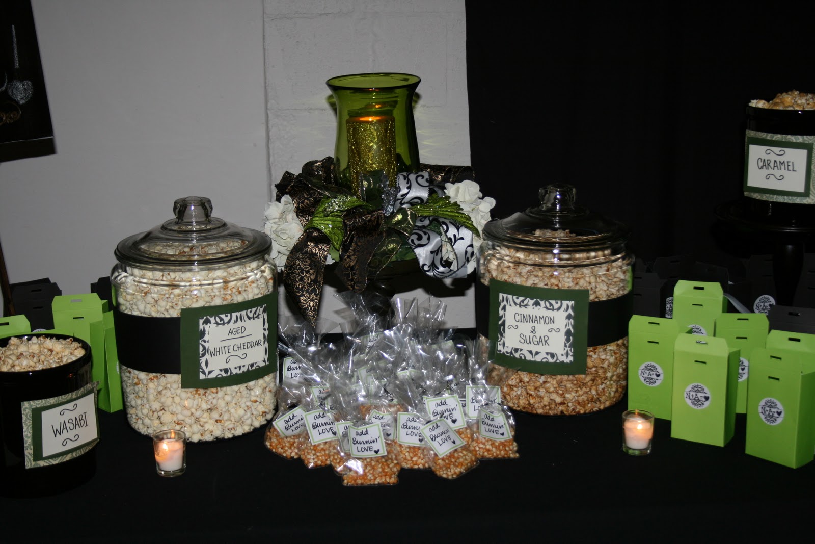 hey pretties! So this past saturday was my little sisters enagagement party! We were so excited to plan such a fun occasion. My dad and Aarons mother picked the location with nicole and we did the decor. I saw a green and black party on pinterest and my mom and I ran with it. We wanted to play off Aaron “popping” the question so we made a popcorn bar for the guests. We had all sorts of yummy popcorn and bagged kernals with “add burning love” on them for the guests to take home. It was a huge hit! My mom made all the centerpieces for the tables. We went to hobby lobby and picked out three different types for her to add the flowers and jewels to. She is SO talented and they turned our perfect! We also had sign sealed and delivered do the big arrangement in the center of the room. My mom also made all the runners on the tables. On the cocktail tables I made pictures of “power couples” (barbie & ken, minnie & mickey, posh and david, tom and katie, and rhett and scarlett). I paired a similar picture to the side of them of nicole and Aaron. They turned out adorable. We had a cupcake tower and a cute little cake for Aaron and Nicole to take home to enjoy. Mermaids did an excellent job on the food and we had an absolutely fantastic time. At the end of the night my mom had an “&” sign for all the couples to take a picture with. We are making nicole and Aaron a guest book with these pictures. SO many more parties to come and we CANT wait! Love you Nicole and Aaron!