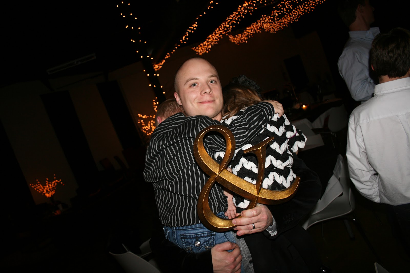 We also did an & sign for our wedding photos, that I spray painted and glittered blue.