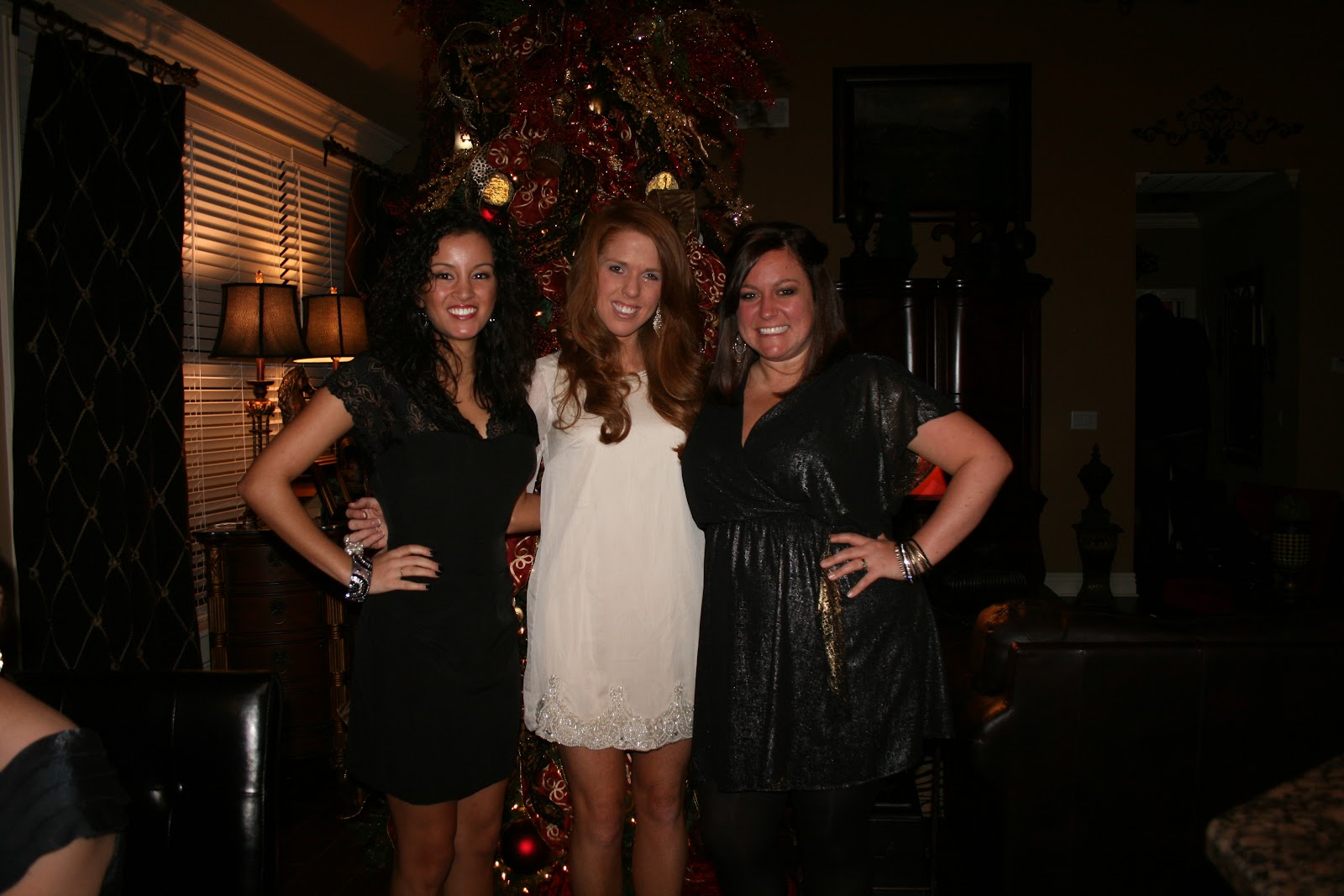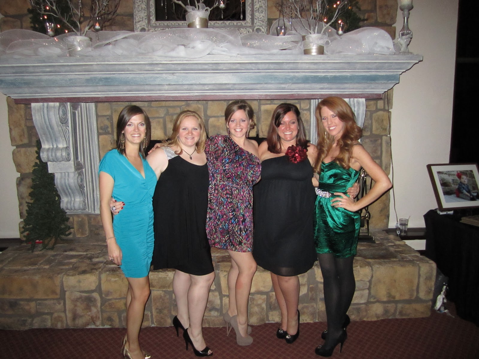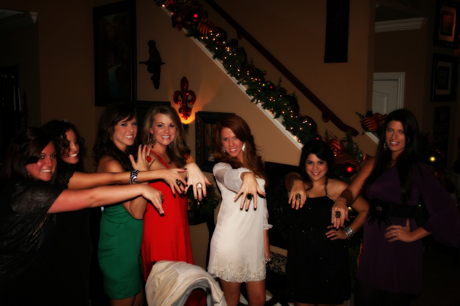 THEN it was time to put the last minute touches on the Christmas Party! Every year I do a Christmas Vixens party with my friends. This year we wanted to include the boys so we did Christmas Vixens and Blitzens. I stayed up till midnight baking up a storm with my mom and sister. We did a dessert table that was reindeer theamed. Each reindeer had their own dessert! : ) I saw on pinterest a couple weeks ago mini doughnuts made from cheerios, so I made Dasher’s donut shot! It turned out precious. Then we made Prancer Pretzels, Cupid Cupcakes, Vixen Icing Bites, Dancer Poles(haha), Blitzen Shots and Truffles, Comet Haystacks, and Donner Doozies. It turned our gorgeous and was delicious! We hired Jayme to cater the event and let me tell you.. her food is amazing! I cant even tell you how awesome it was to have her do the food and not be standing in front of a stove for hours before the party! She made so many delicious things and the guests RAVED about her food. THANK YOU JAYME! For the gift exchange we did Cocktail rings and the boys brought liquor. The party went just perfect and everyone looked absolutely GORGEOUS! I jsut love this time of year!