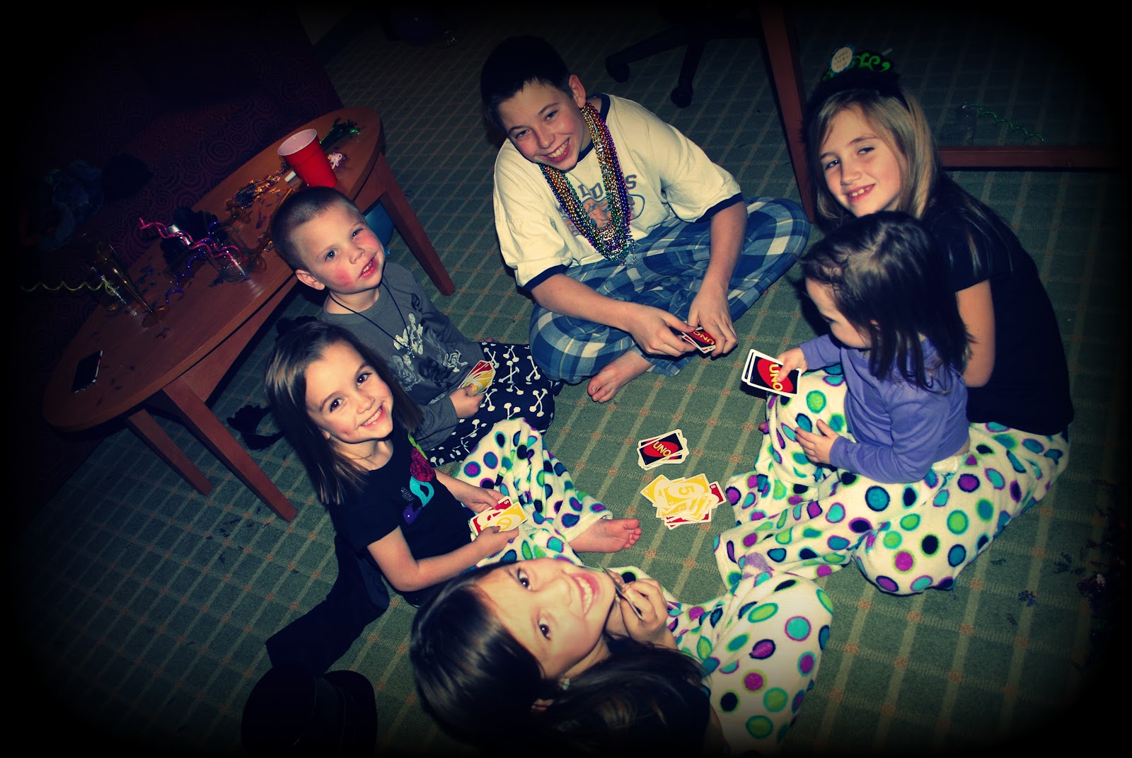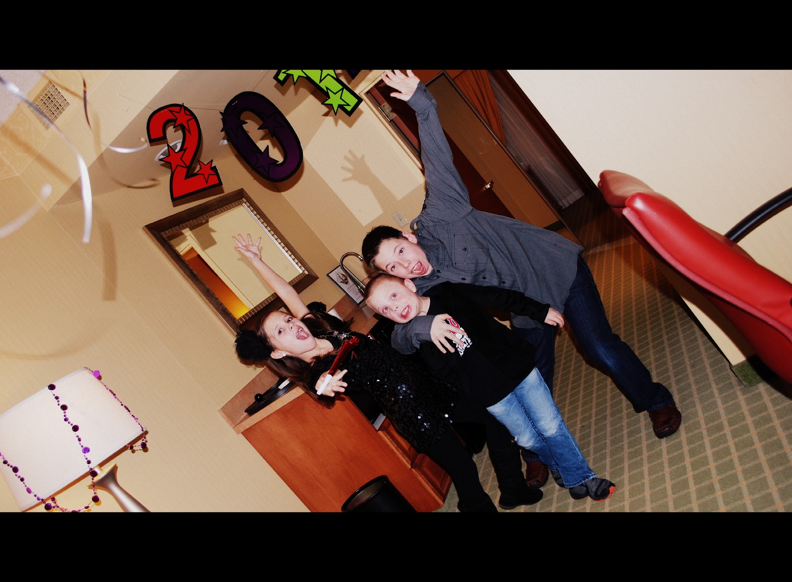I hope everyone had a very safe and fabulous new years eve! We had an absolute awesome nye. I got two hotel rooms for us to pre party and after party in. I surprised the little kids and decorated one of the rooms just for them! I also got them matching pj bottoms to wear. They just LOVED it. Then the other room was for the adults. My mom put together a gorgeous arrangement, seriously in like 20 min. Then us girls got matching new years pjs to wear later in the evening. We all met up before hand and hung out then headed to dinner for some yummy food. Then we headed back and put on comfy pjs and had such a great time! Yes, I do love going out and having a crazy fun time, but this was just SO nice to stay in with my family and friends. The kids will always remember times like these and I just love that! here are a GAZILLION pics… you have been warned! : )