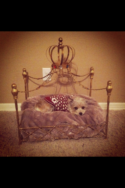 Last today, I had to show you Sadie Jane’s new bed! My mom is making some custom slip covers for it and we are going to change it up a bit, but OMG, how cute is it?!?!