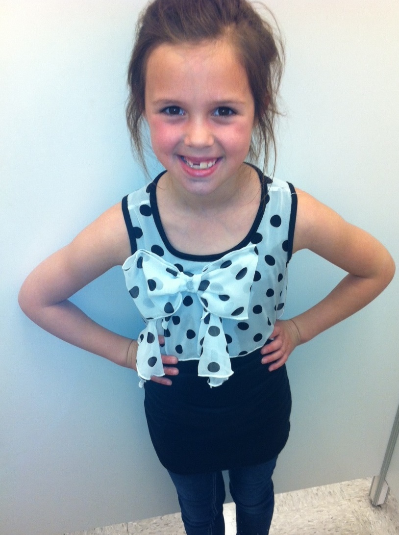 Your little niece is gorgeous!! Gosh, I wish I was an auntie!! I'm an only child though. I love the polka dot top w/ a bow…so sassy. It's perfect for her.