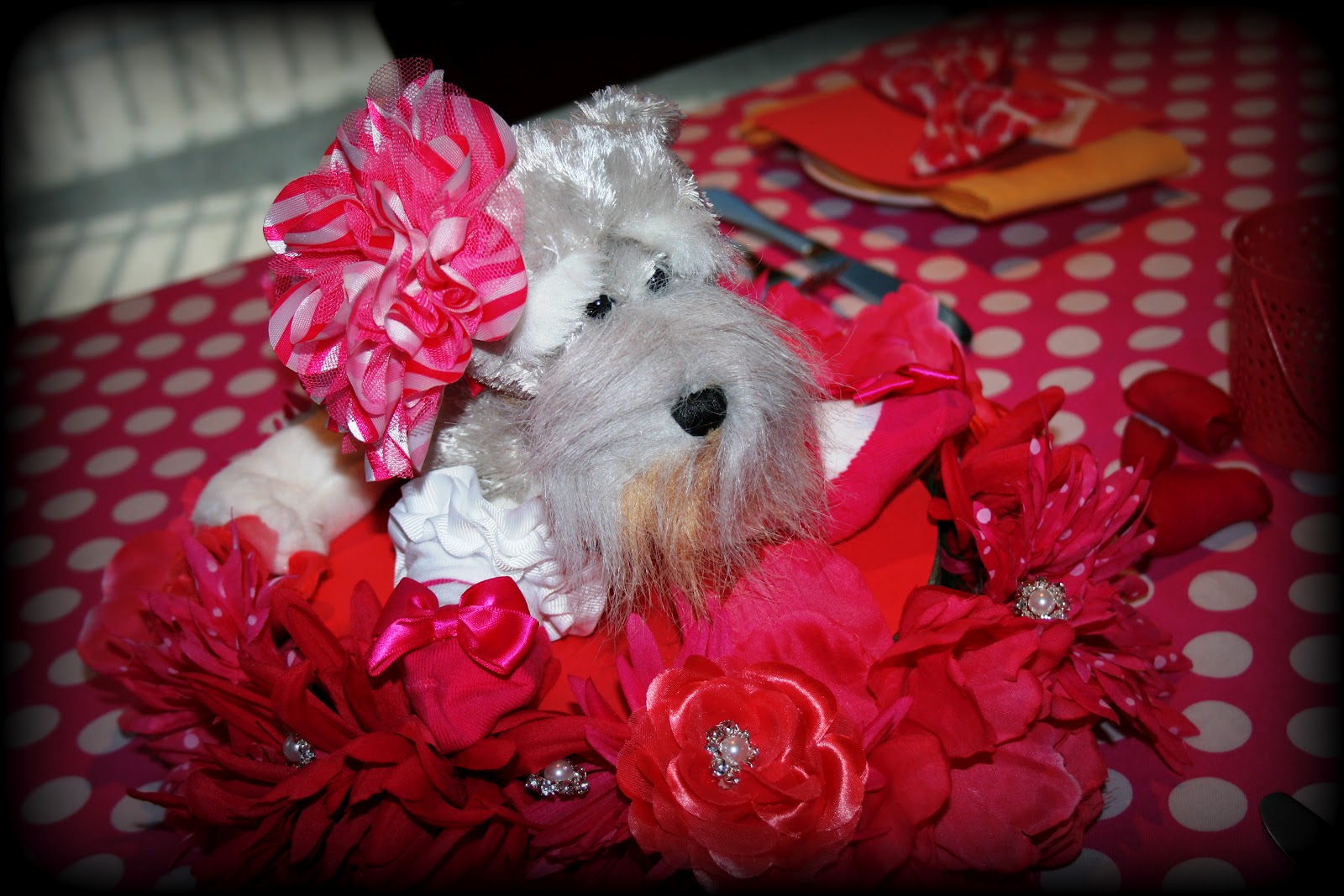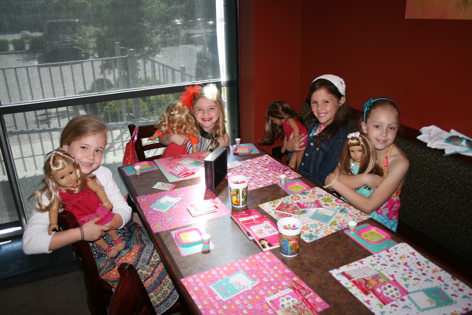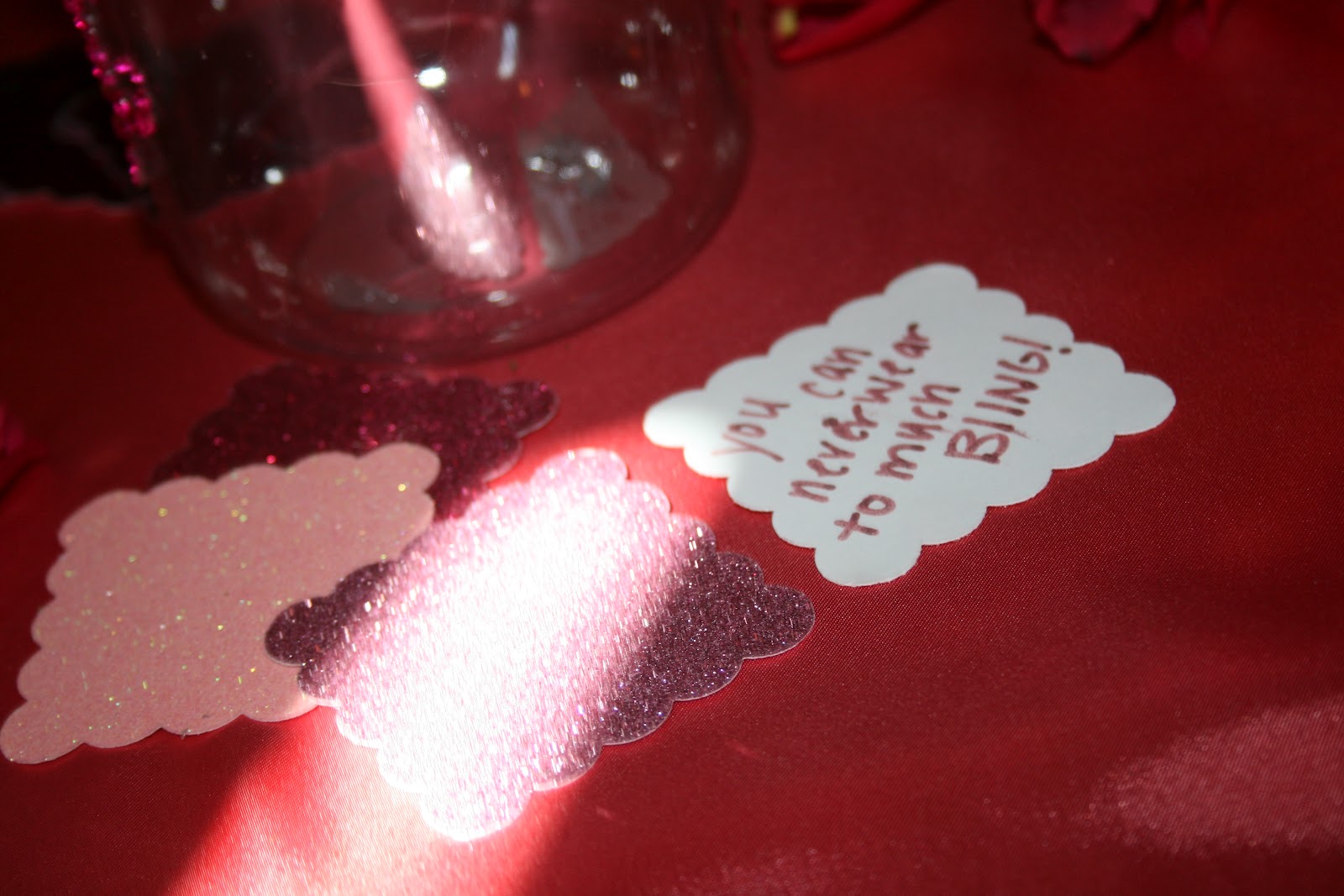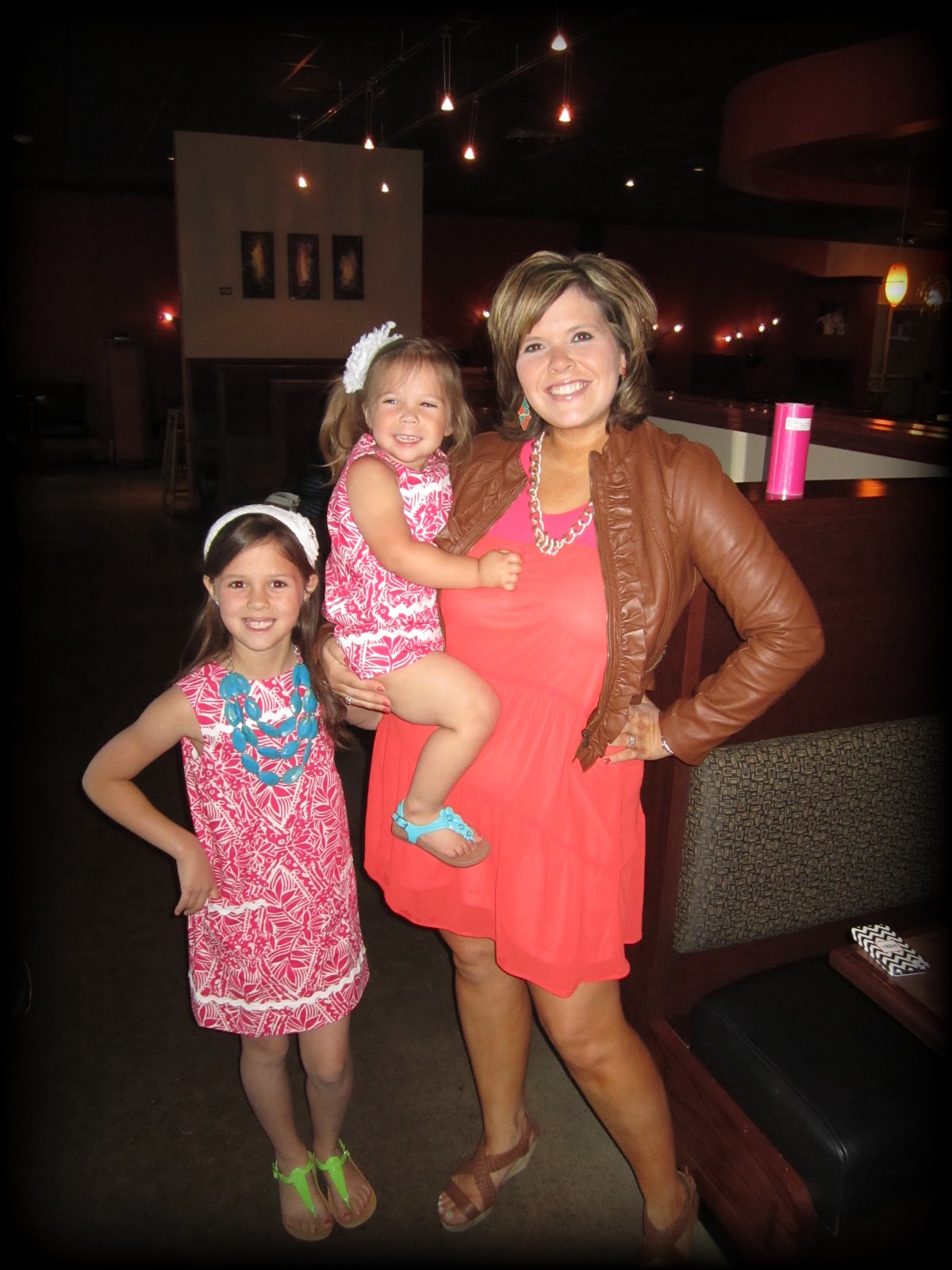 Friday night I spent the night getting things ready for Kristen’s baby shower. I helped put together the decor for the shower and it turned out super cute. The theme was super girly with pink and coral as the main colors. My sister saw a cute idea online where they used stuffed animals as decor. We picked up some super cute animals and I blinged them out. It was adorable. We got really lucky and found some mini sock monkeys that were pink and coral chevron, which matched the invite. I added a bling headband to those too : ) I immediately thought of the favor, big bows with “the bigger the bow, the better the mama” on the cards and my talented mom made them. They were a huge hit. She also made the pretty table cloth. We blinged out some bottles and had everyone write a blessing for the sweet baby girl. My sister set up an american girl doll party for the little girls. It was SO cute!