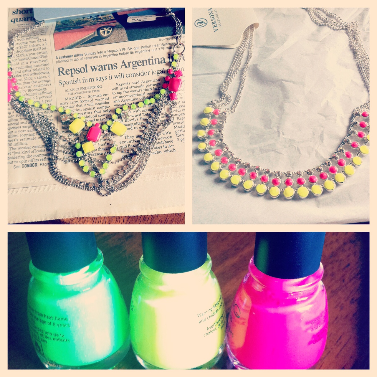 So I decided to make one that was similar. What do you need? Well you need a fancy blingy necklace. I got one of mine from Versona for like $5 and then the other from Icing at the mall. Then you need nail polish. Us girls ALWAYS have that laying around.