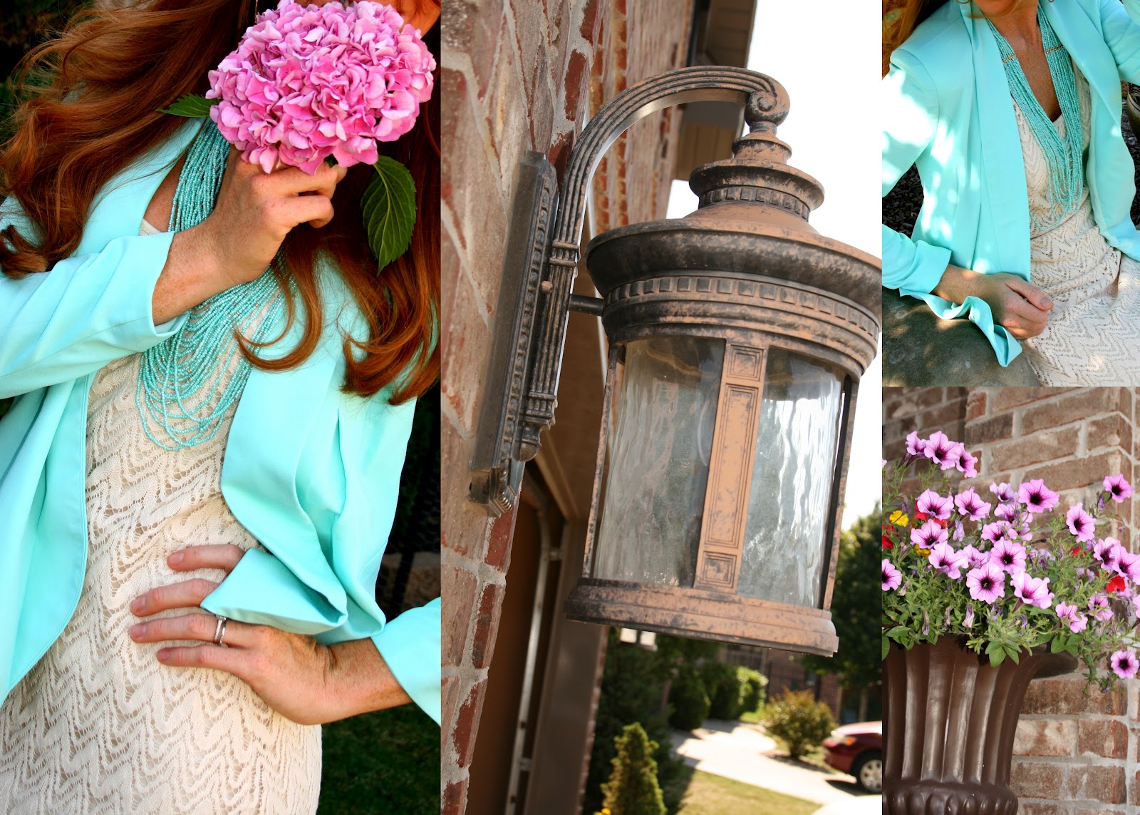 I will be wearing all three of these pieces in many different ways. The blazer is a stunning mint green color. It can be dressed down with a flowy top and cut off jean shorts, or dressed up with a dress. It is perfect to wear to work and then a night out with the girls. The dress is also a very versatile piece. You can dress it up like I did or wear flat sandals and some vintage jewels. Of course the mint beaded necklace is a statement piece. How gorg would it be with a simple White T Shirt? I just adore the entire outfit and each piece on its own.