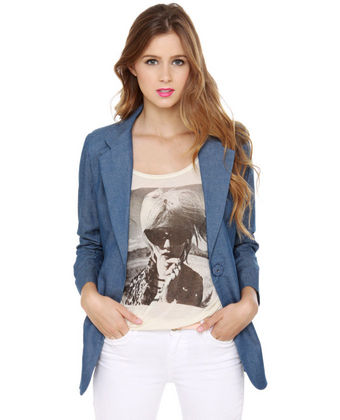 This denim blazer is so on trend and would be adorable with a vintage rocker T