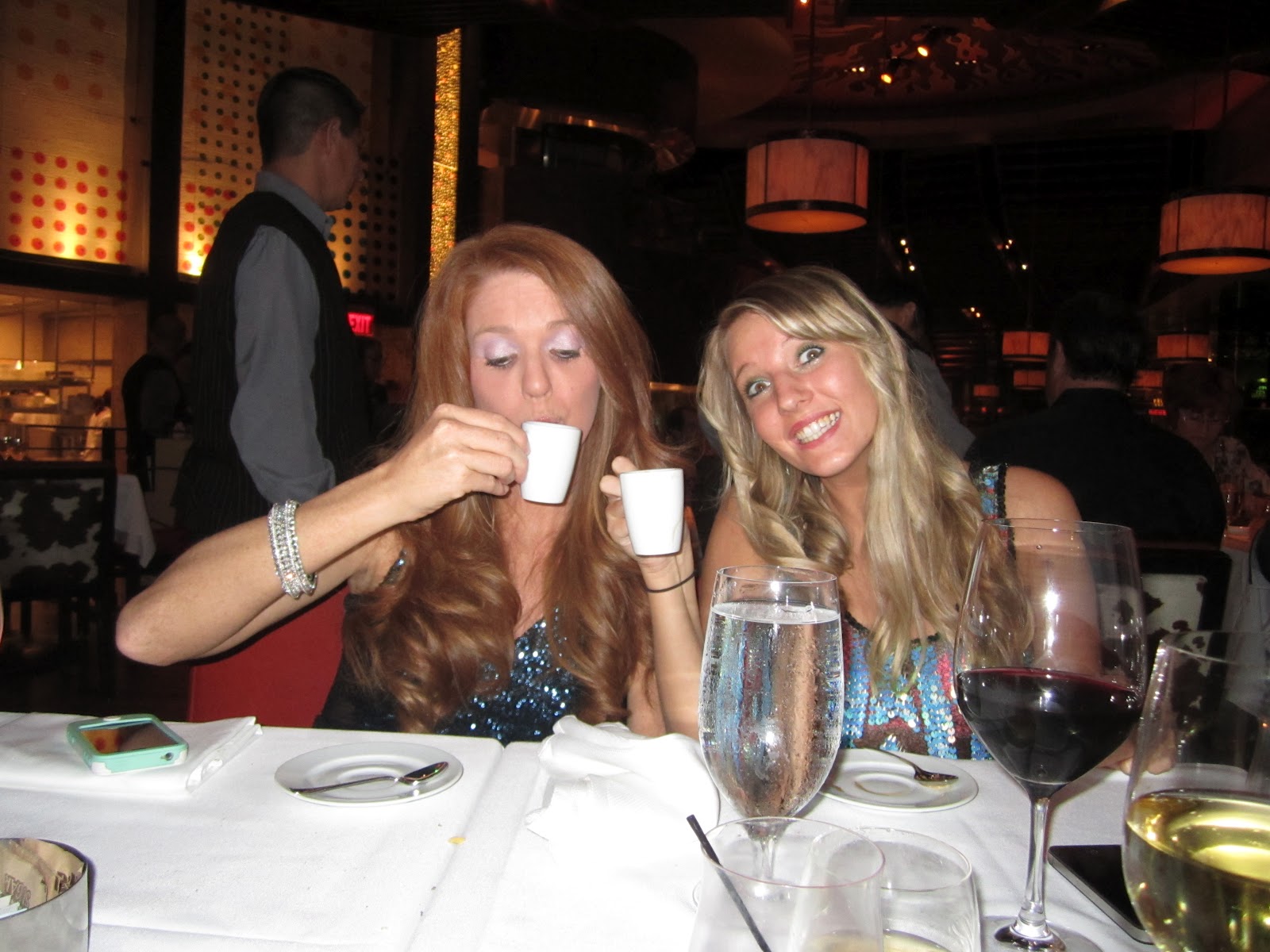 Saturday we got up and ate at our favorite place, mon ami gabi.. amazing! After breakfast we headed to top shop for a personal shopping appointment I made for us! It was SO much fun! We had all sorts of pretties in our changing suite and champagne too. The owner of top shop was actually in Vegas. We chatted it up with him and of course took pics : ) That night we headed to Mesa for another amazing meal and then out for some fun.