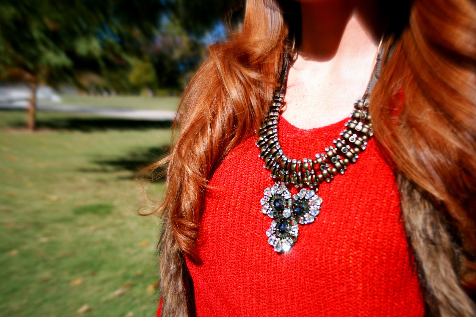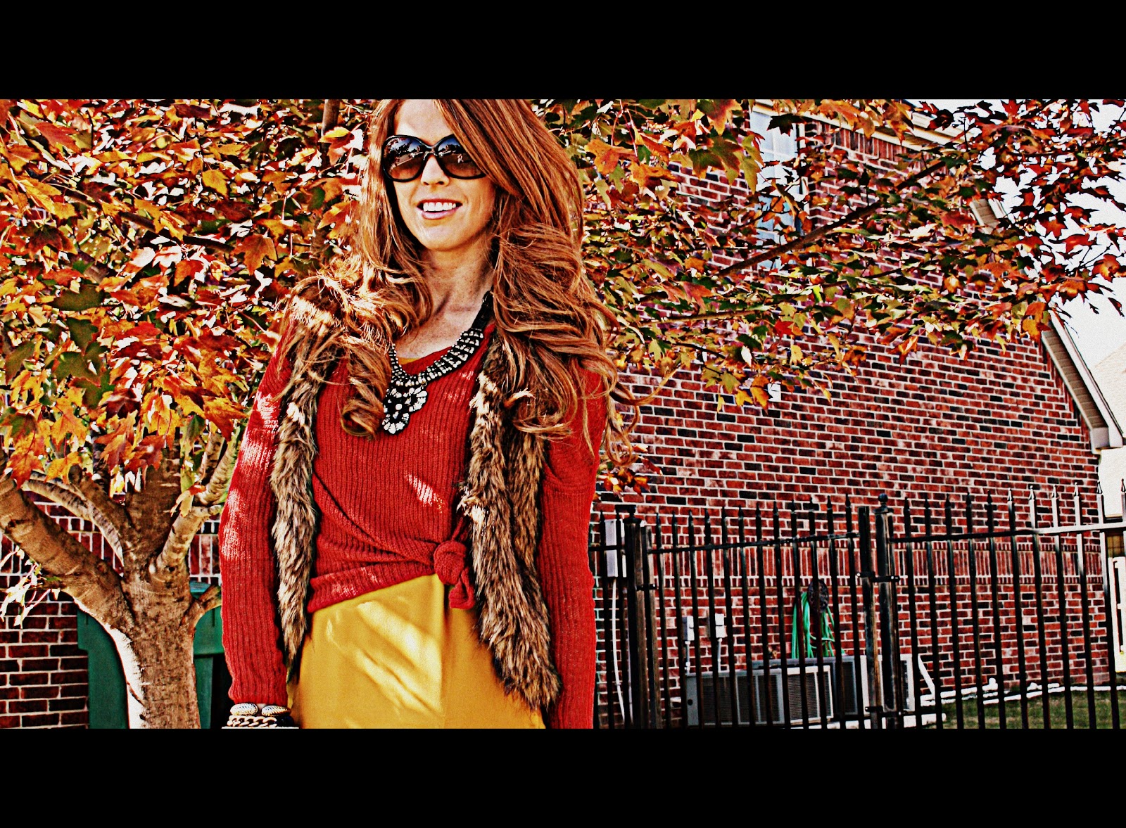 As soon as I saw this dress I fell in love. The color, the cut, the mix of fabrics…. perfection. Its one of those dresses that’s timeless and can be worn so many different ways. I paired it with an over sized rust savoir faire sweater knotted on the side and a savoir faire fur vest. This outfit is effortless and extremely comfortable. The sweater is darling paired with jeans and the vest is a staple this fall. Its hard to find a fur vest that isn’t bulky, but this vest is flattering and the perfect length. Its a must have ladies.