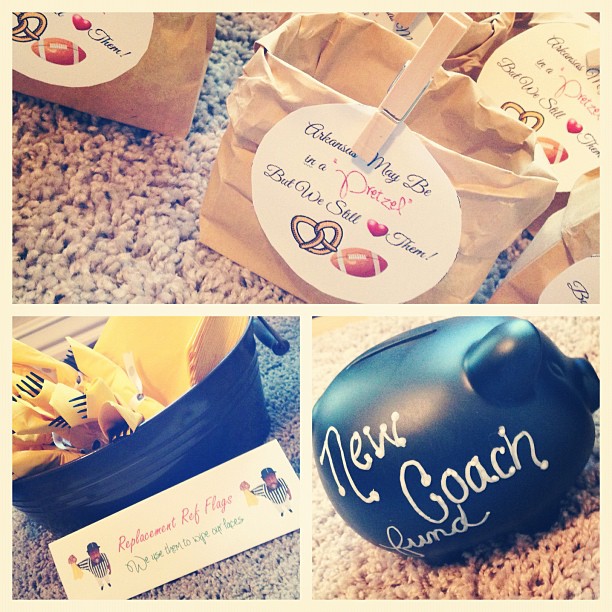 I am having a party at my house tomorrow and it was supposed to be for the hogs game but it got moved to an early game, BUT we are still going to party tomorrow night. We will celebrate the hogs anytime (even if they are having a bad year: ( ) I have been busy making some funny things for the decor : )