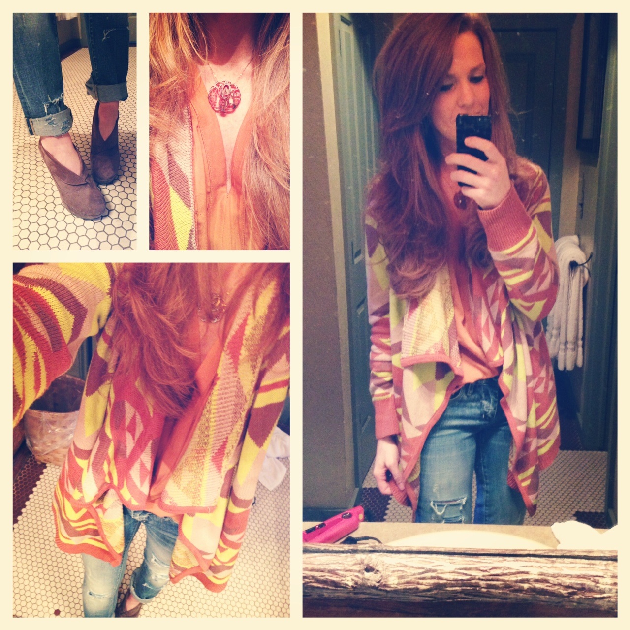 ootd, savoir faire jeans, sweater and blouse. Target booties