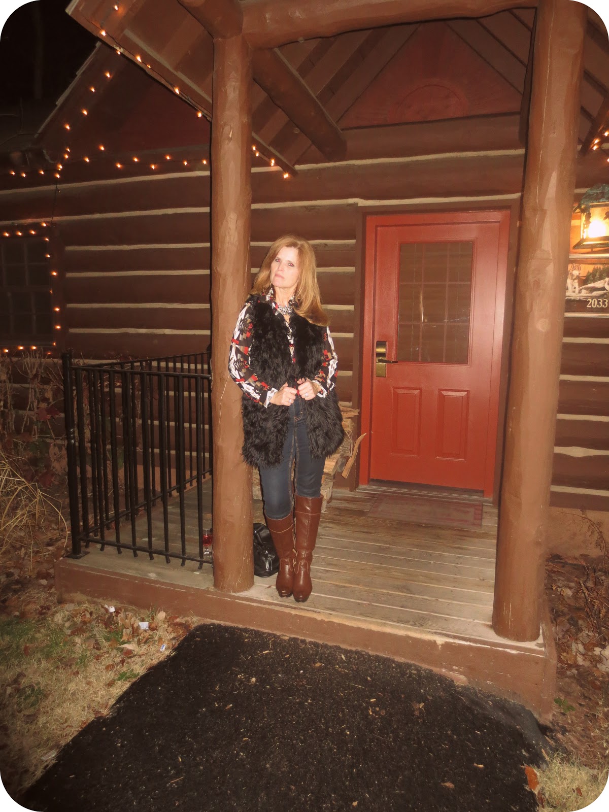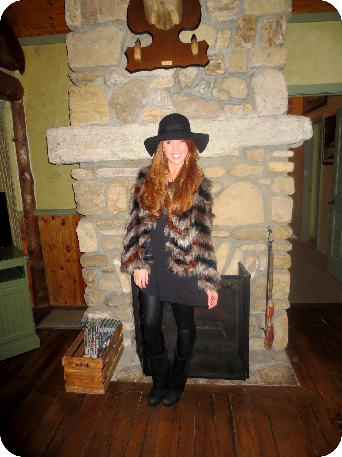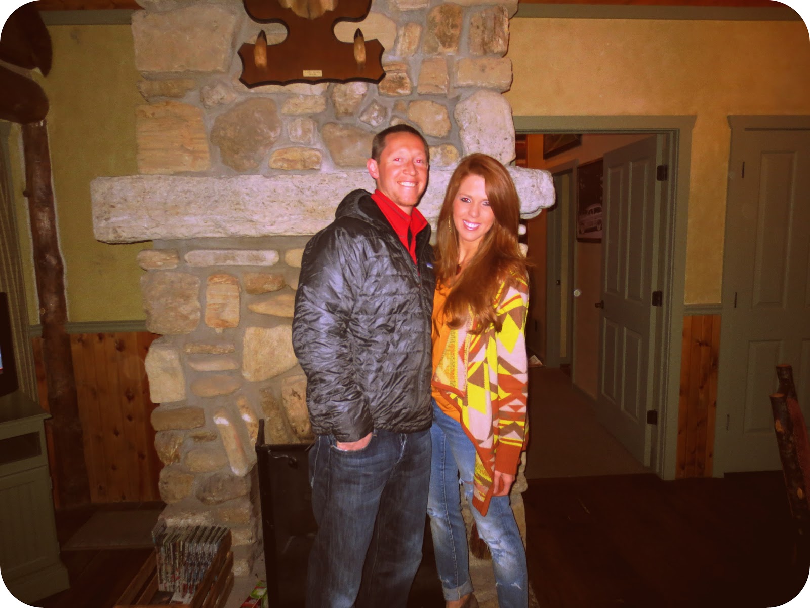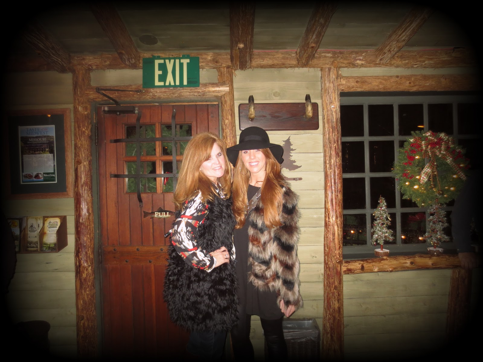 The next day my mom and I headed to Big Cedar! We headed down before the boys because they had to put in a days work. On the way there my mom spotted this random store on the side of the road that had full lenght faux fur coats. She literaly gasped yall! haha. Of course there was one left in her size and she HAD to have it 😉 oh and of course we documented our road stop haha. We got to Big Cedar, checked in and then headed to our unreal cabin. This place was gorgeous and the amazing deal we got on it made it even better. It didnt take us long to head out to do some shopping. First stop was the gift shop where we both found matching PJS because the 3 pairs we brought were not suitable Then we headed to the outlet malls were we did some damange. My mom even found me some socks that had a little sadie on them 🙂 That night we dolled up big cedar style and heaed to the buzzard bar for a late dinner and night caps. It was such a fun day!