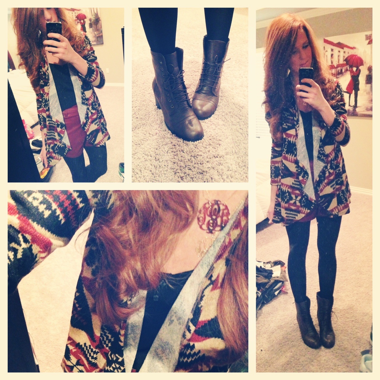 ootd, Savoir Faire from head to toe, sweater, leather shorts and boots