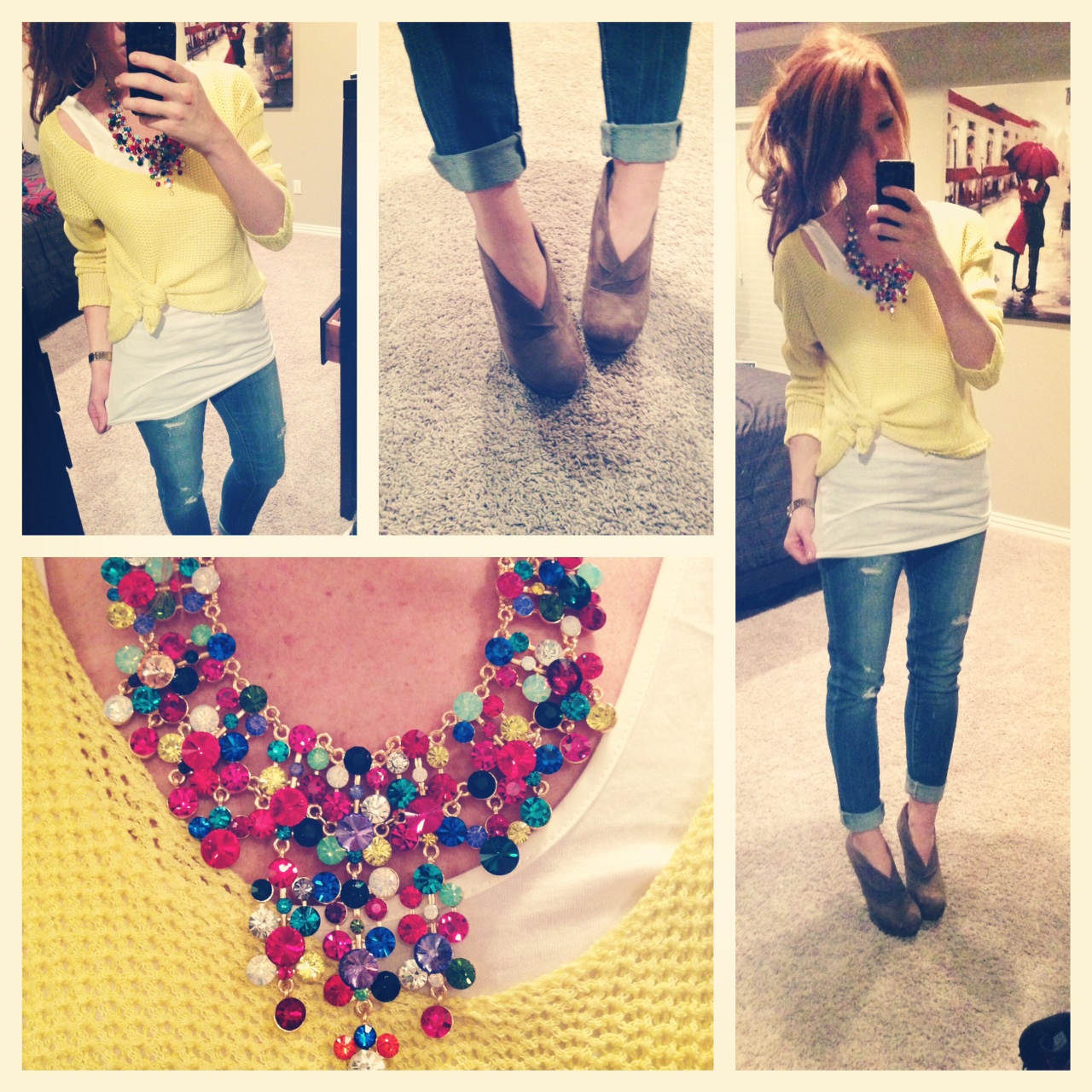 my ootn. Forever 21 jeans/ Savoir Faire sweater, forever 21 tunic, target booties and dillards jewels