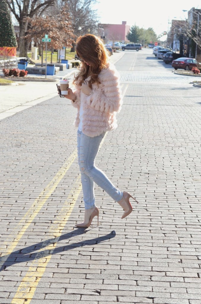 I love a great statement piece and this Blush fringe jacket from Savoir Faire is just that. I love the color and how playful the fringe is. I paired it with a pair of distressed light wash jeans that I randomly picked up at Target last week. I was pleasantly surprised when I slipped them on. They are on sale for $20 currently online too! You will be seeing a lot more winter pastels over the next couple weeks, I am bit crazy about them!