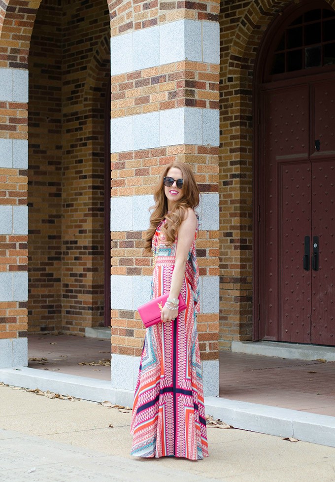 When looking for that perfect dress for a spring/summer wedding my first stop is always Eliza J. If you have been reading my blog for the past couple of years, you have seen me feature her gorgeous designs numerous times. I immediately fell in love with the bright colors on this dress. The mix of orange, turquoise and pink screams summer and I can’t wait to take this dress on an upcoming vacation. I also adore the large bow in the back too. It adds that perfect amount of southern charm to an already perfect dress.