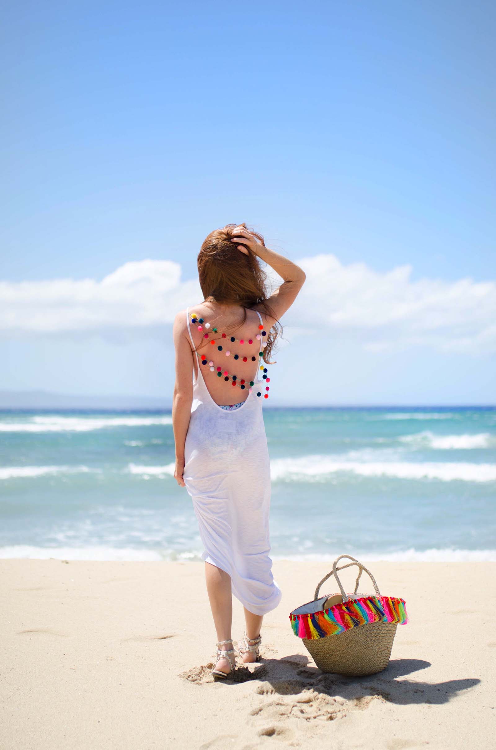 I paired another 6 shore swimsuit with THIS stunning cover up. This piece had me at hello with the cute tassels and turquoise embroidery. Be sure to check out more Hawaii Tiarie pieces here.