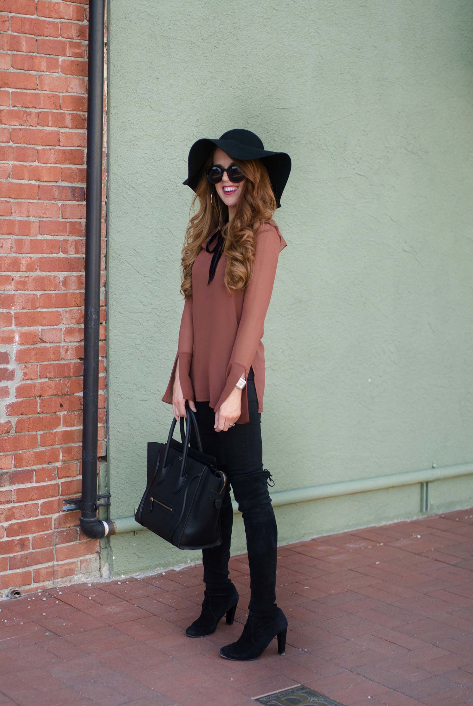 What I love most about this top is that it is very versatile! You can wear it now to transition into the season with a classic pump and jeans. I also adore it tucked into a pencil skirt and layered with a blazer for the office. Today I styled it full on fall with my favorite black denim and otk boots! You guys may have noticed that I am loving all types of hats for fall and THIS floppy hat has always been a staple of mine. All that is missing is a pumpkin spiced latte haha! Below are a few fall favorites I am loving that are available at Nordstrom.