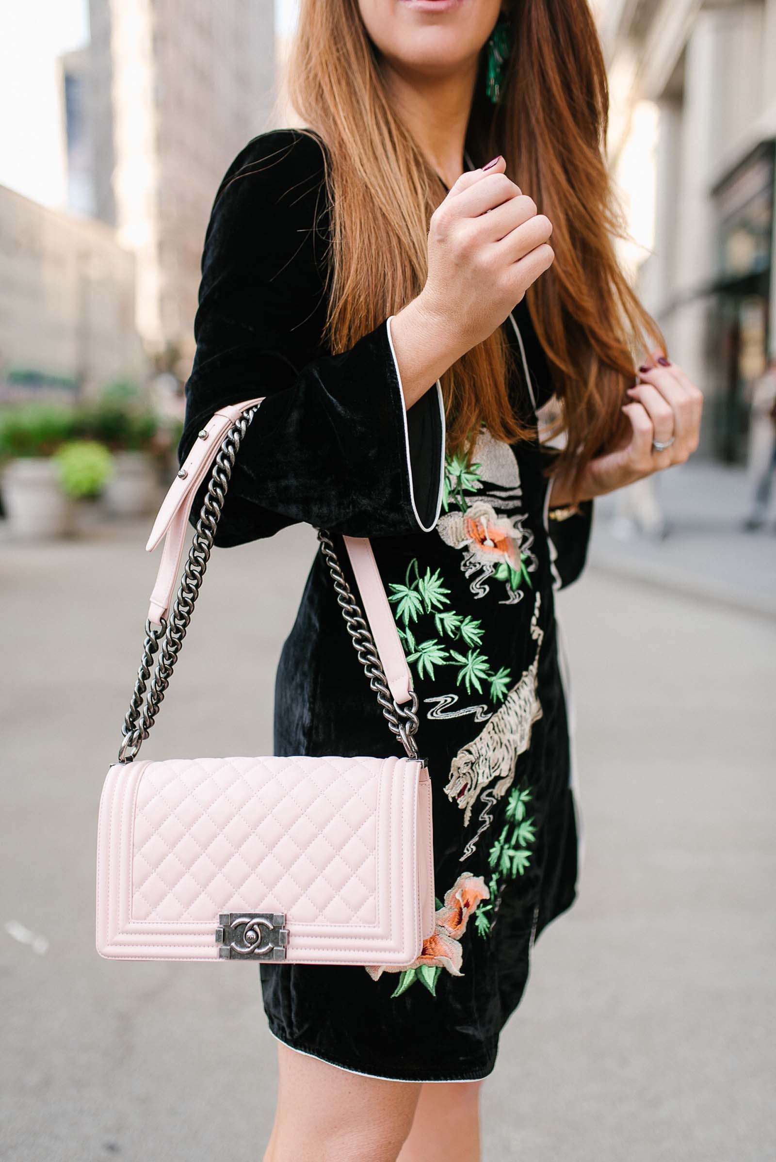 DRESS RIXO London | BOOTS Zara (very similar) | BAG Chanel (similar style) | EARRINGS JCrew | SUNGLASSES Karen Walker