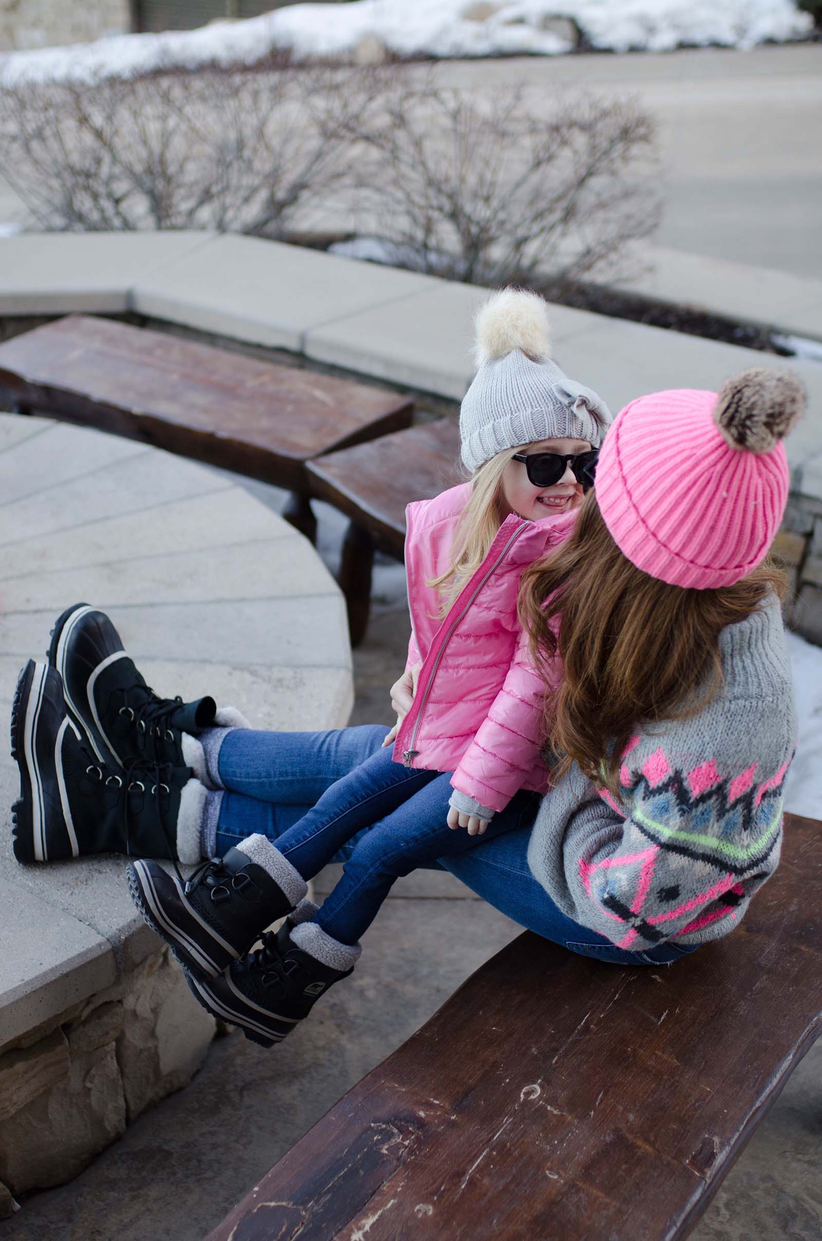 Hi guys! I hope everyone’s week is going great. We are having the BEST time in Park City. Today I am sharing a fun mommy and me look featuring Sorel Boots! Olivia is just like her mama and loves a good S’more. Every time we travel and see a fire pit, it is always on our to do list for our trip! They always have the fire pit going here, so we took advantage too many times to count!